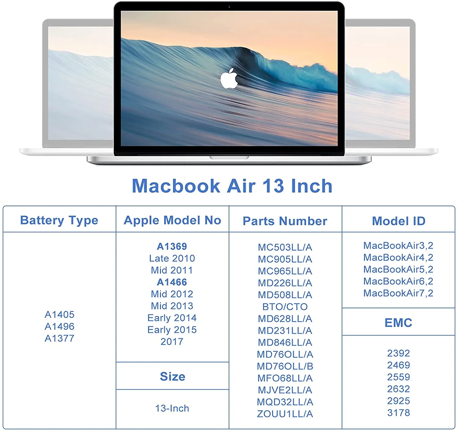 Macbook air 13 inch A1466 battery (2017, Early 2015, Early 2014, Mid 2013)A1369 battery (Late 2010, Mid 2011)