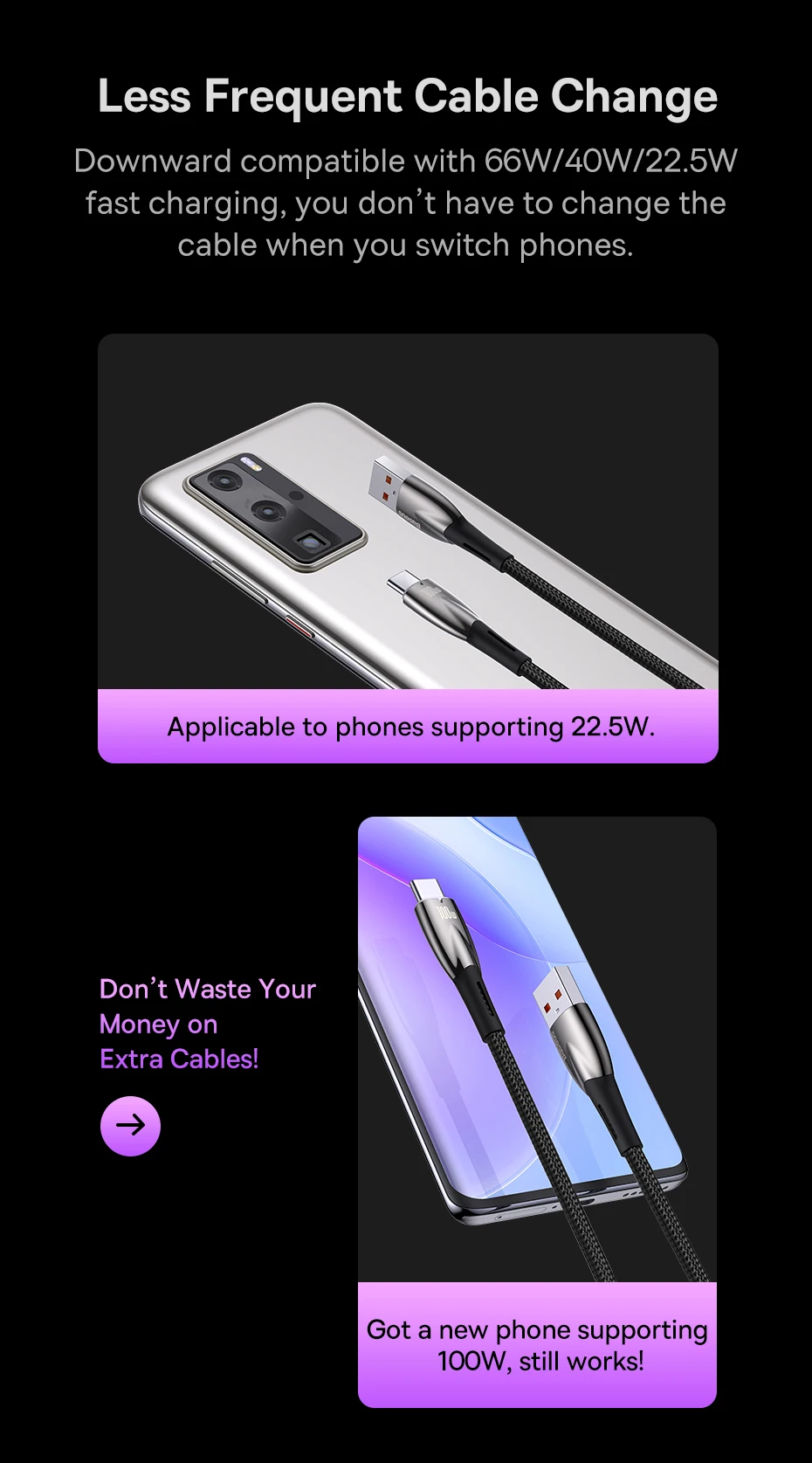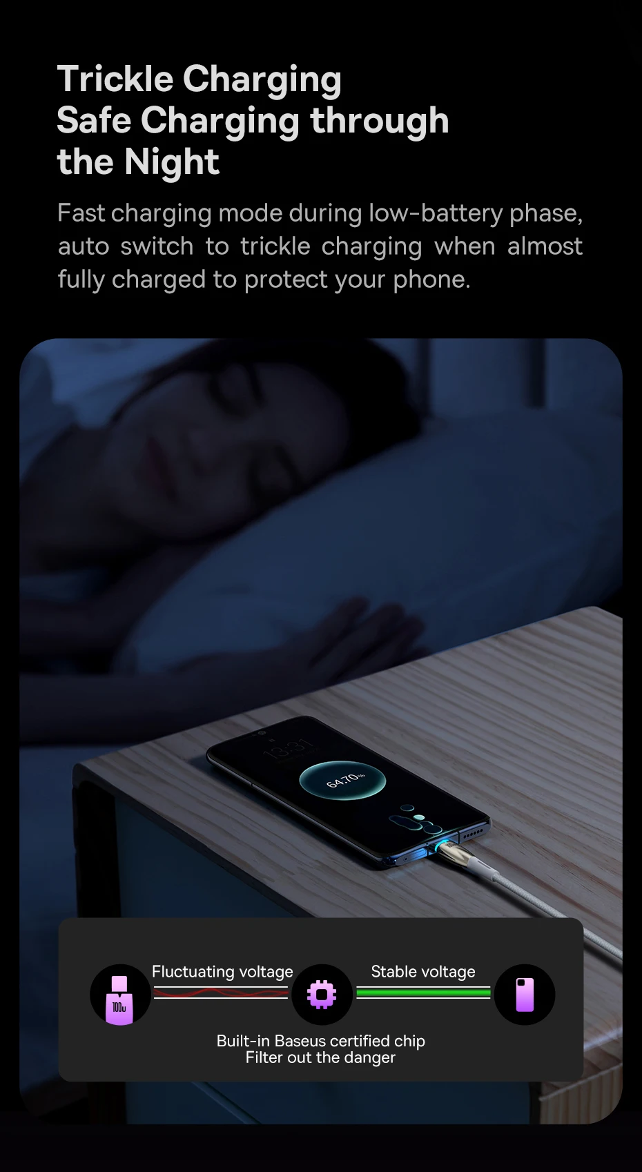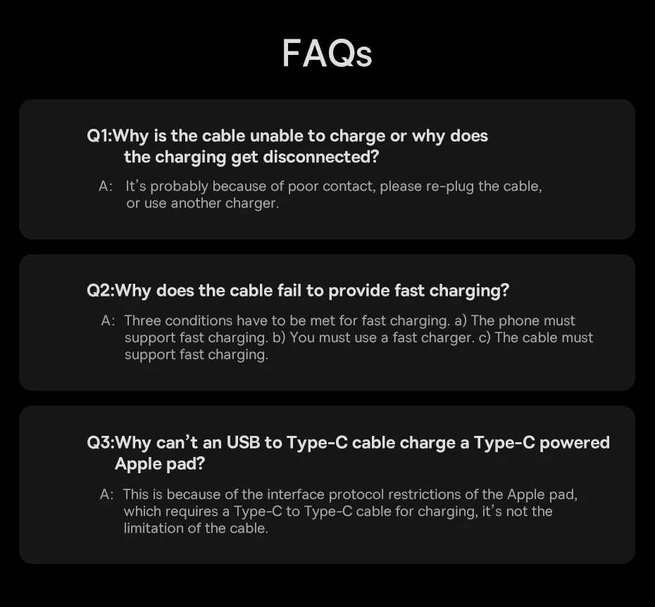 Tip: The A to C cable does not support iPhone 15 charging, Apple charging is PD protocol, and A to C cable is QC protocol. With the current technology, PD and QC are not compatible, all of the Baseus C to C cable support iPhone 15 fast charging.