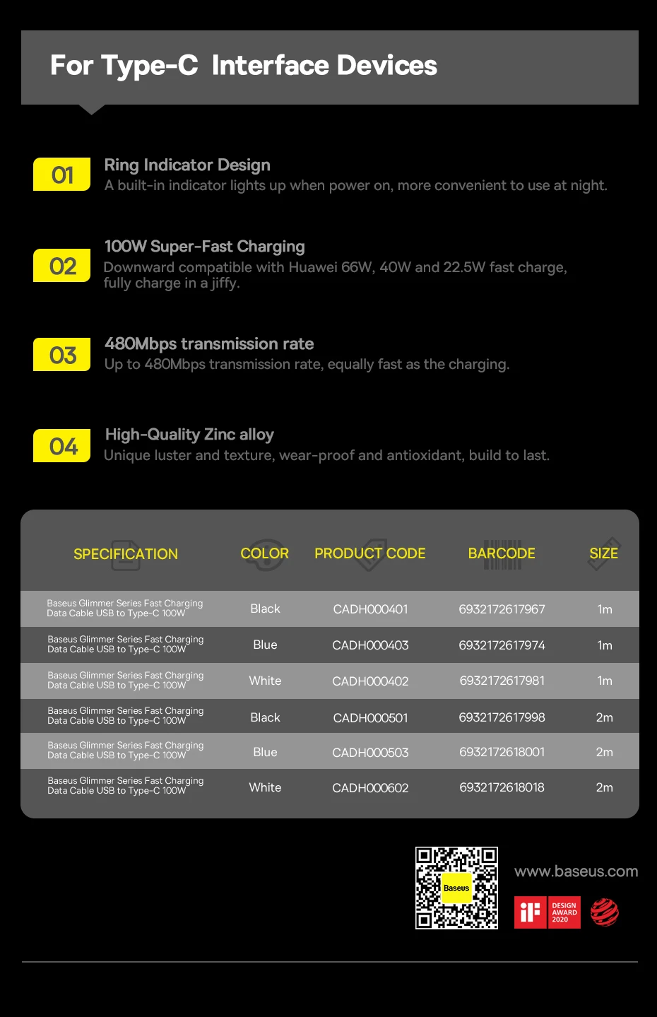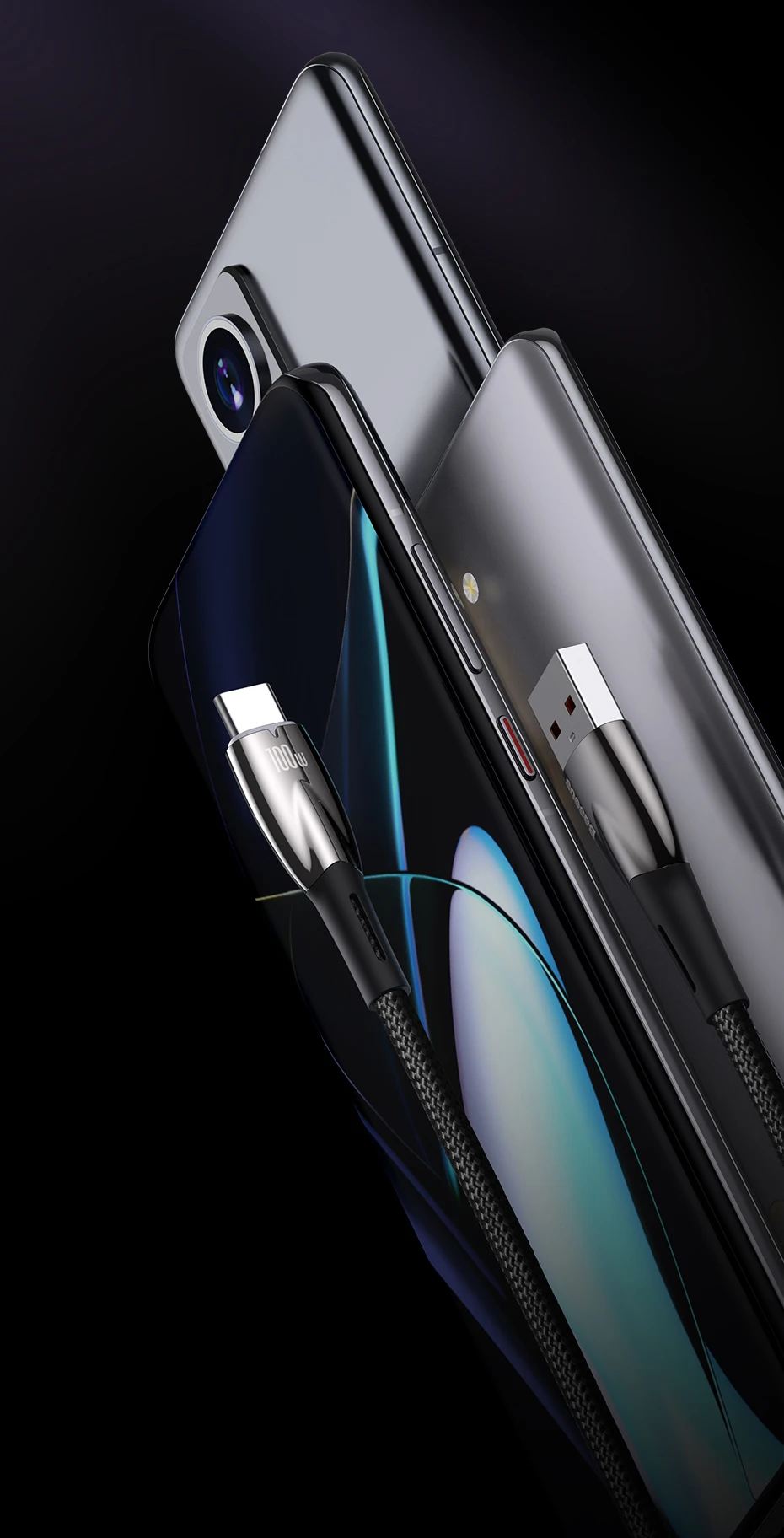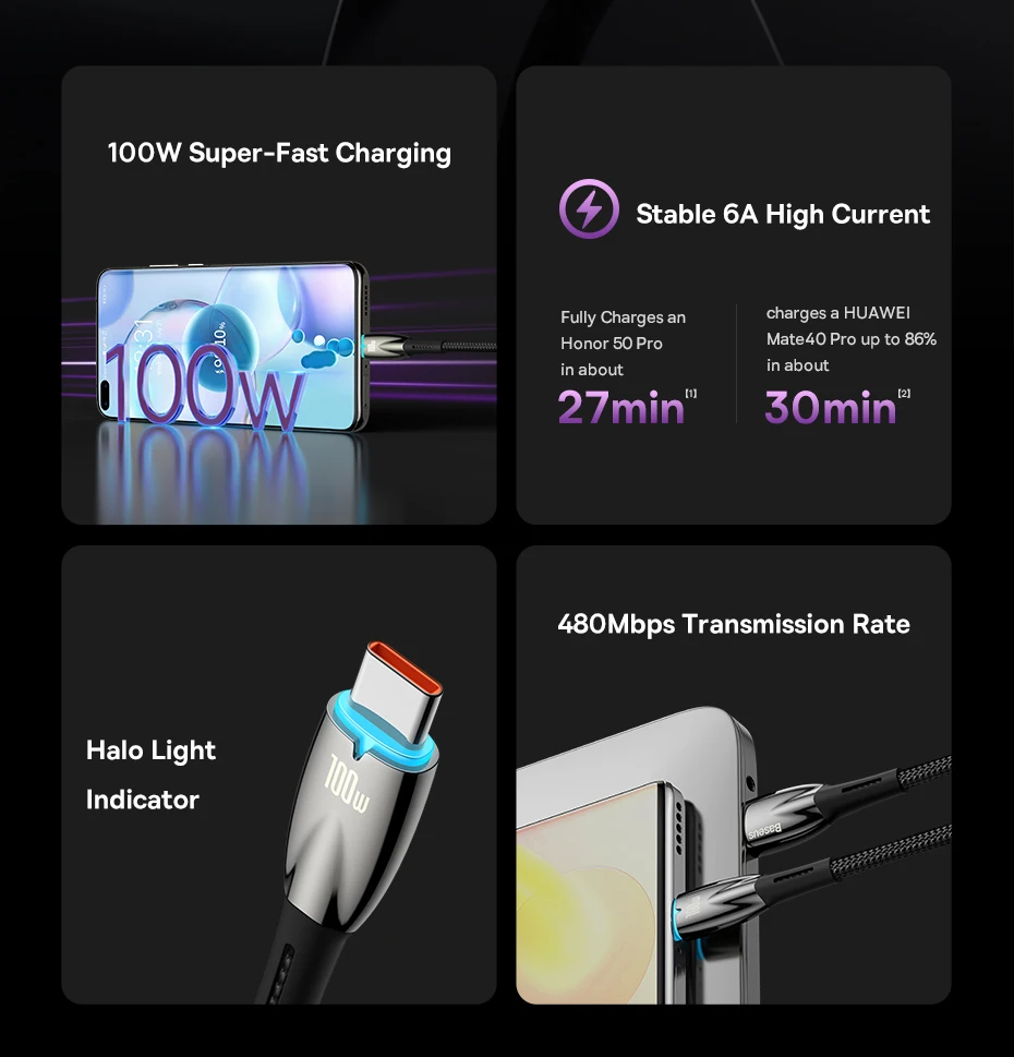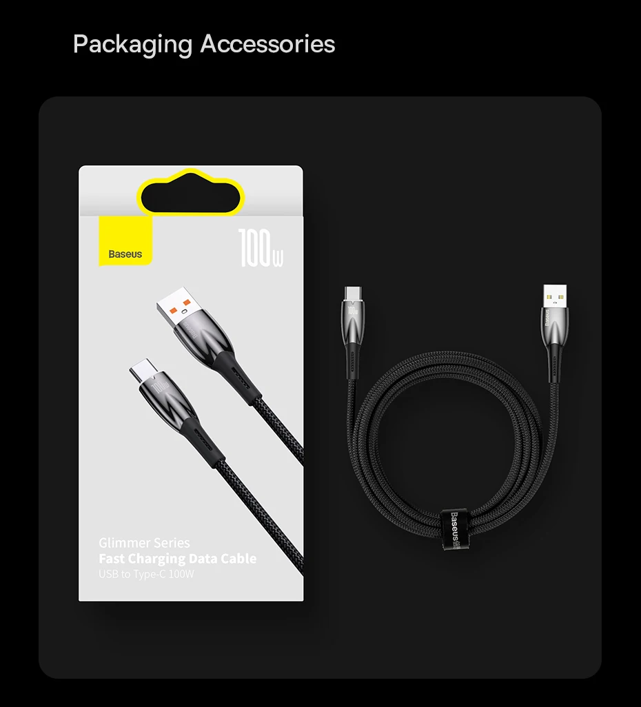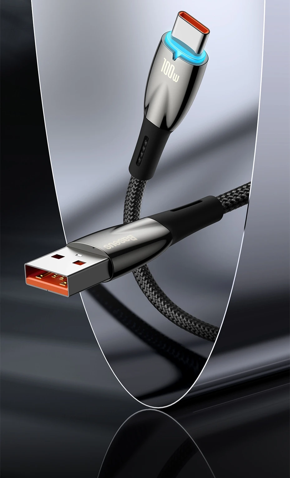 Baseus USB C Cable Smart Led Indicator 100W Fast Charging Data Cable USB To Type-C 5A Mobile Phone Cord For Xiaomi HUAWEI Samsung & Macbook Laptop