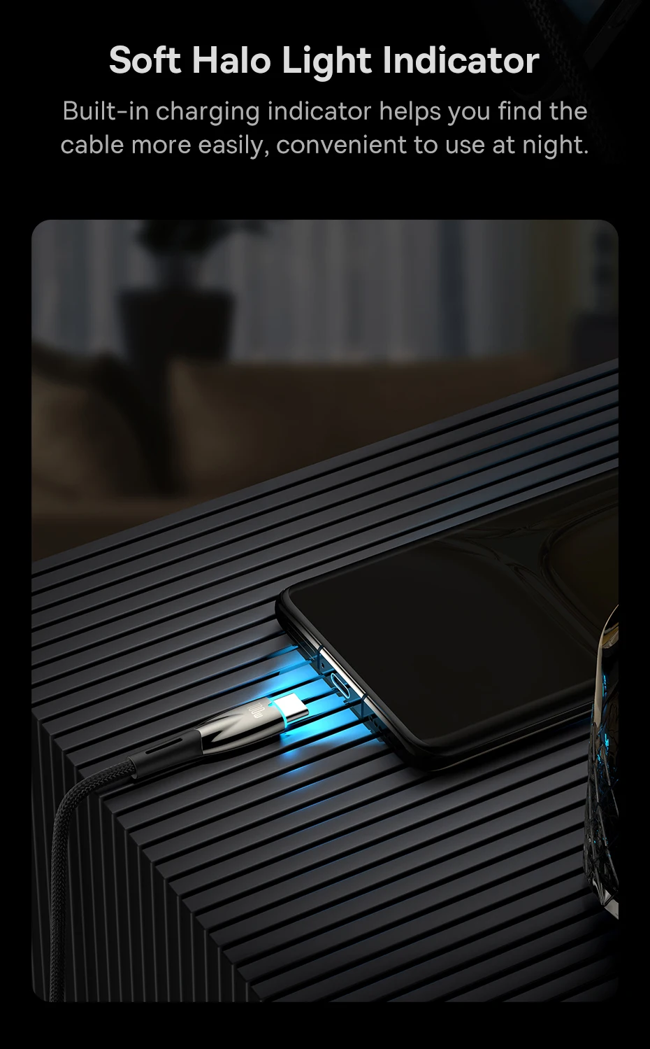 Baseus USB C Cable Smart Led Indicator Quick Charge Cable For Samsung S23 Realme