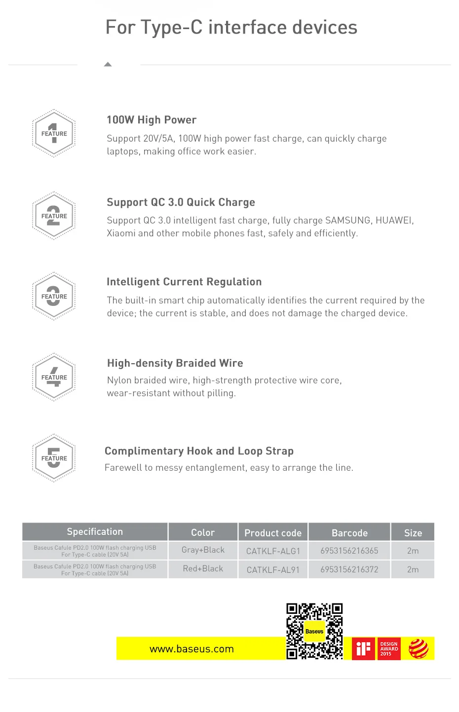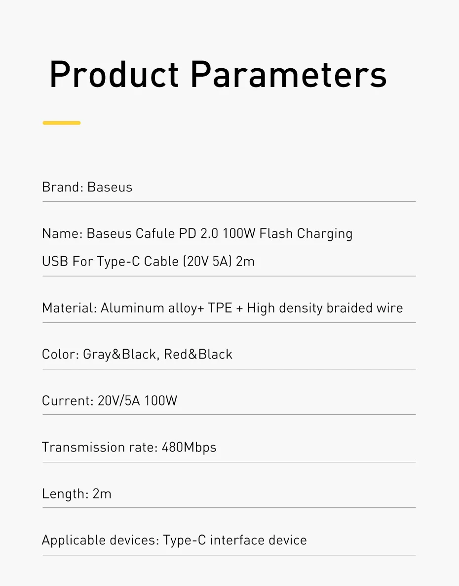 Name: Baseus PD 100W Quick Charge 3.0 USB C To USB-C Cable