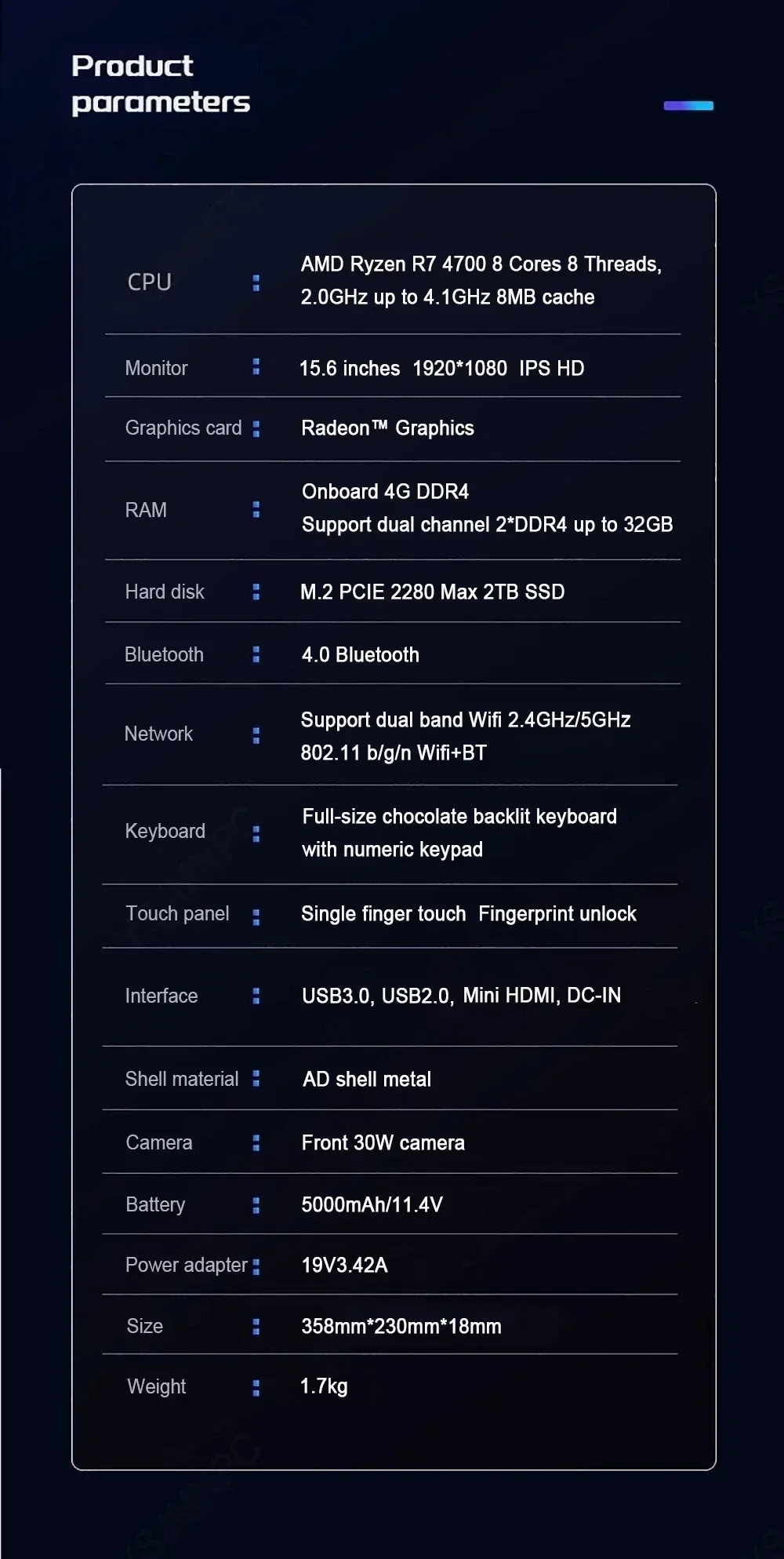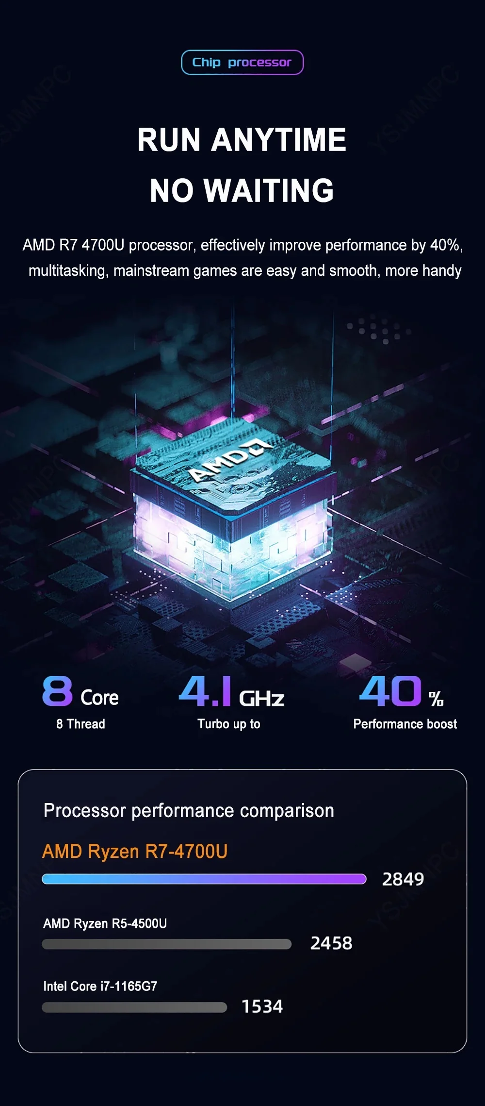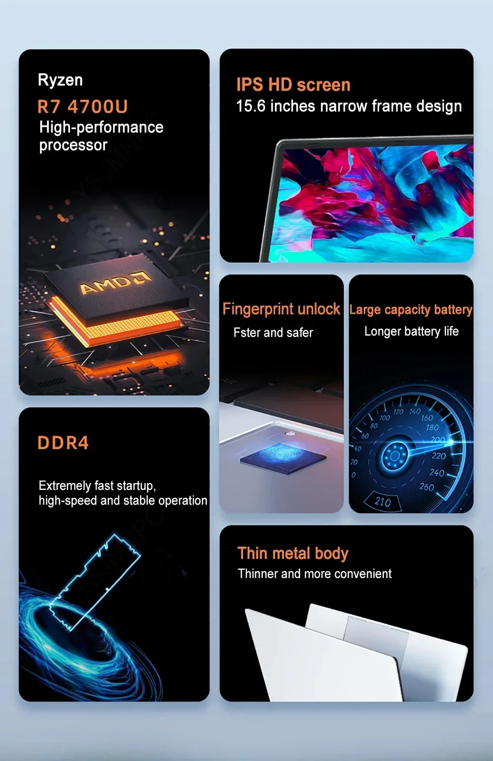 AMD R7 4700U processor, effectively improve performance by 40%,multitasking, mainstream games are easy and smooth, more handy