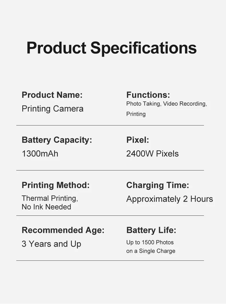 Children Digital Camera Instant Print for Kids Thermal Print Camera Instant Phot