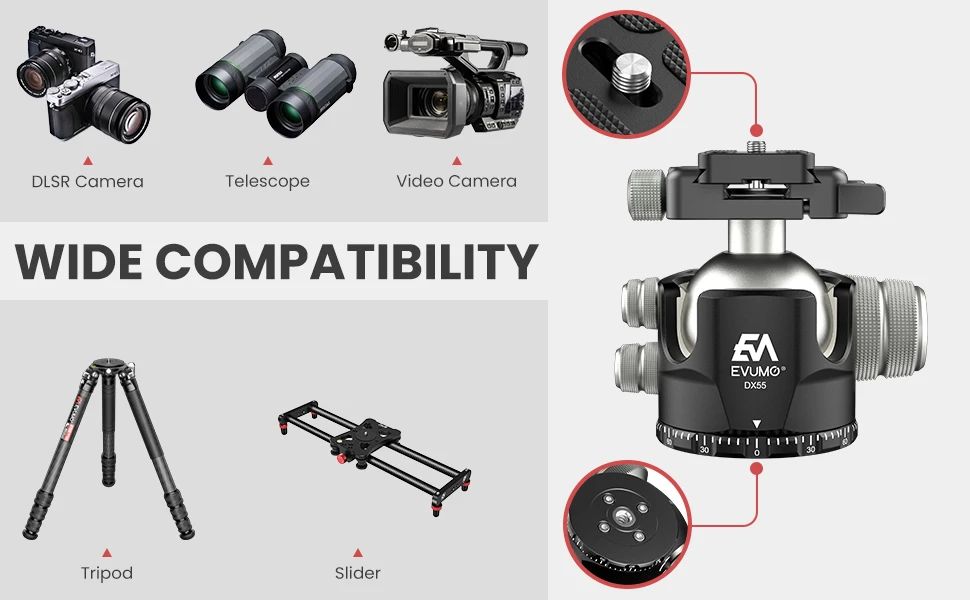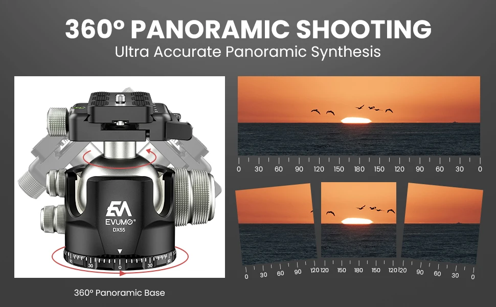 EVUMO DX55-P 55MM Panoramic Ball Head for Tripod