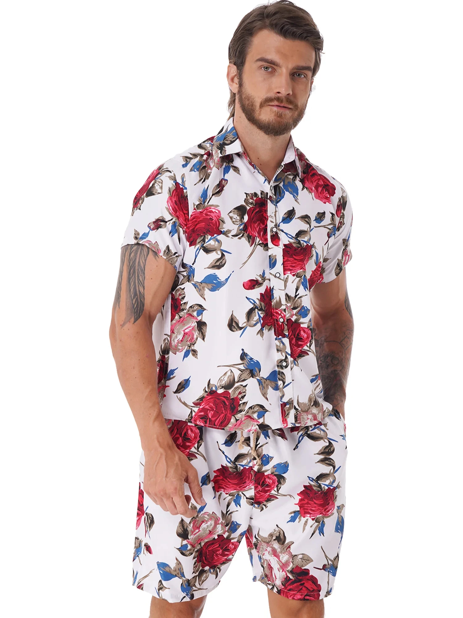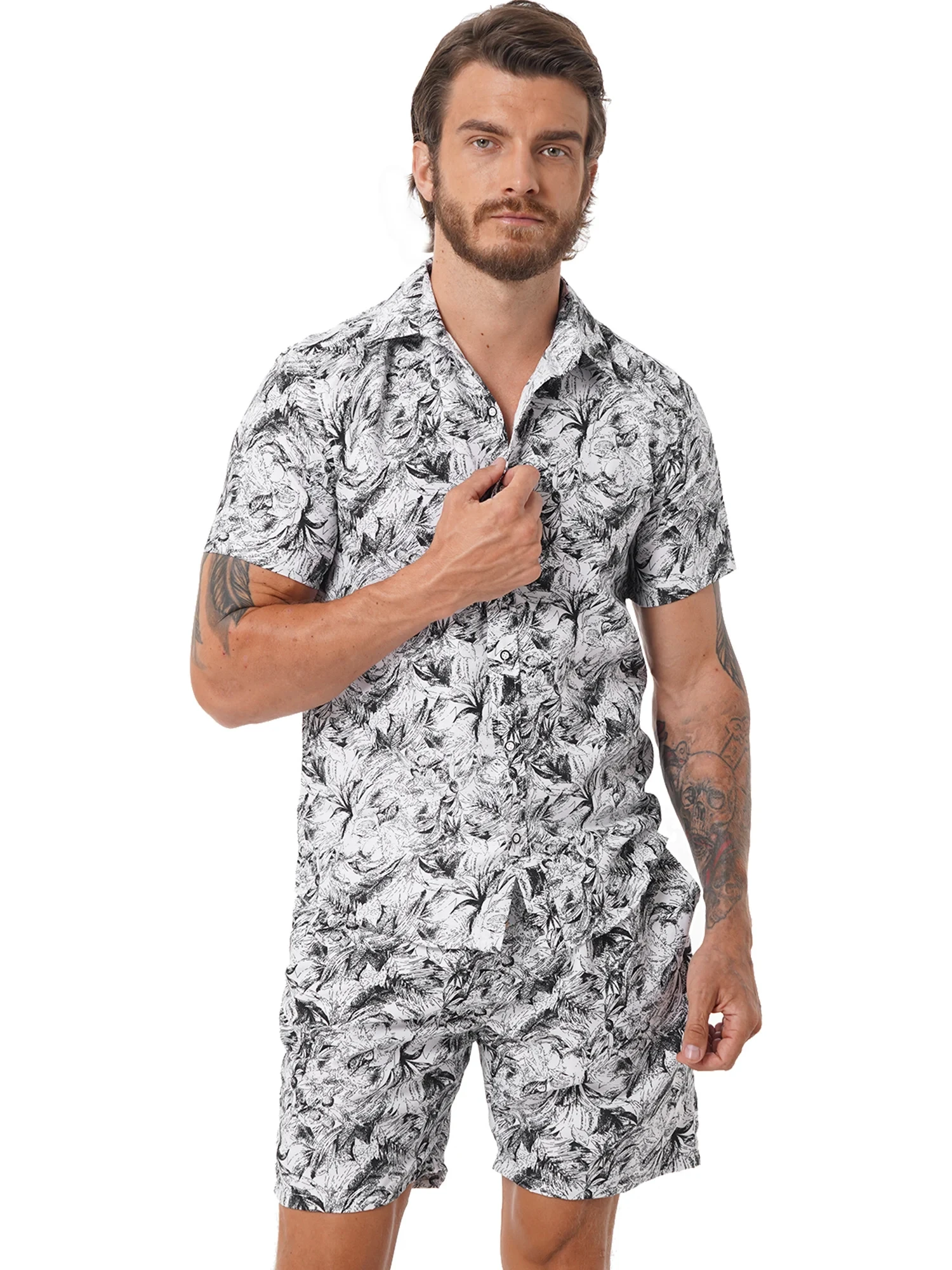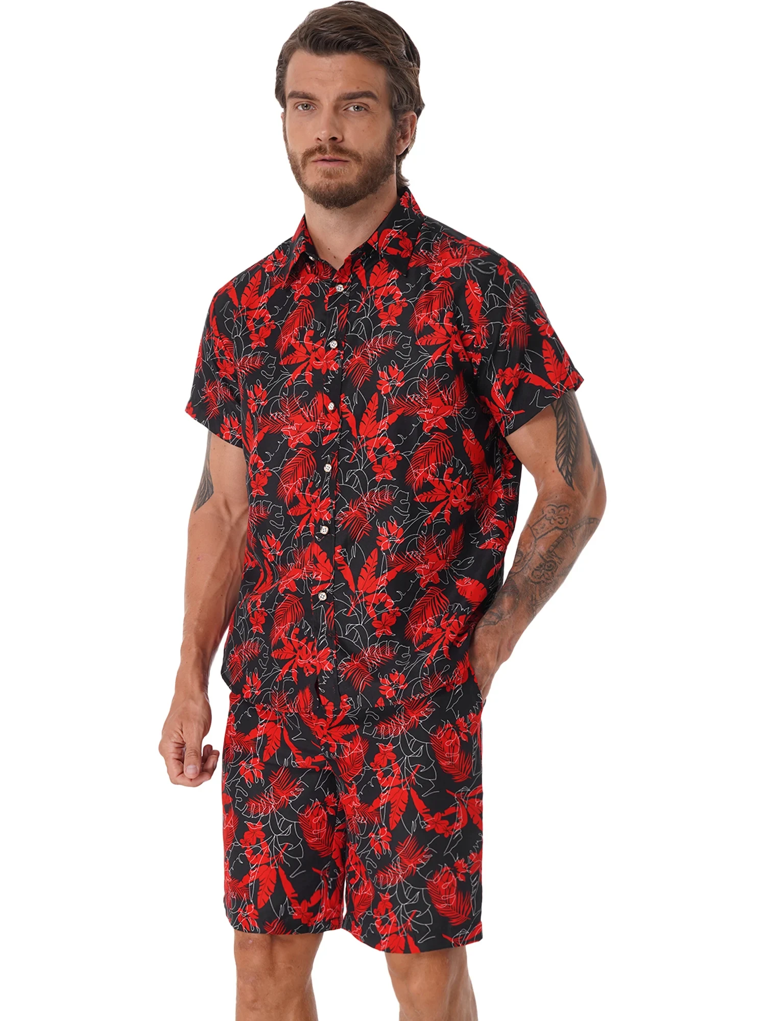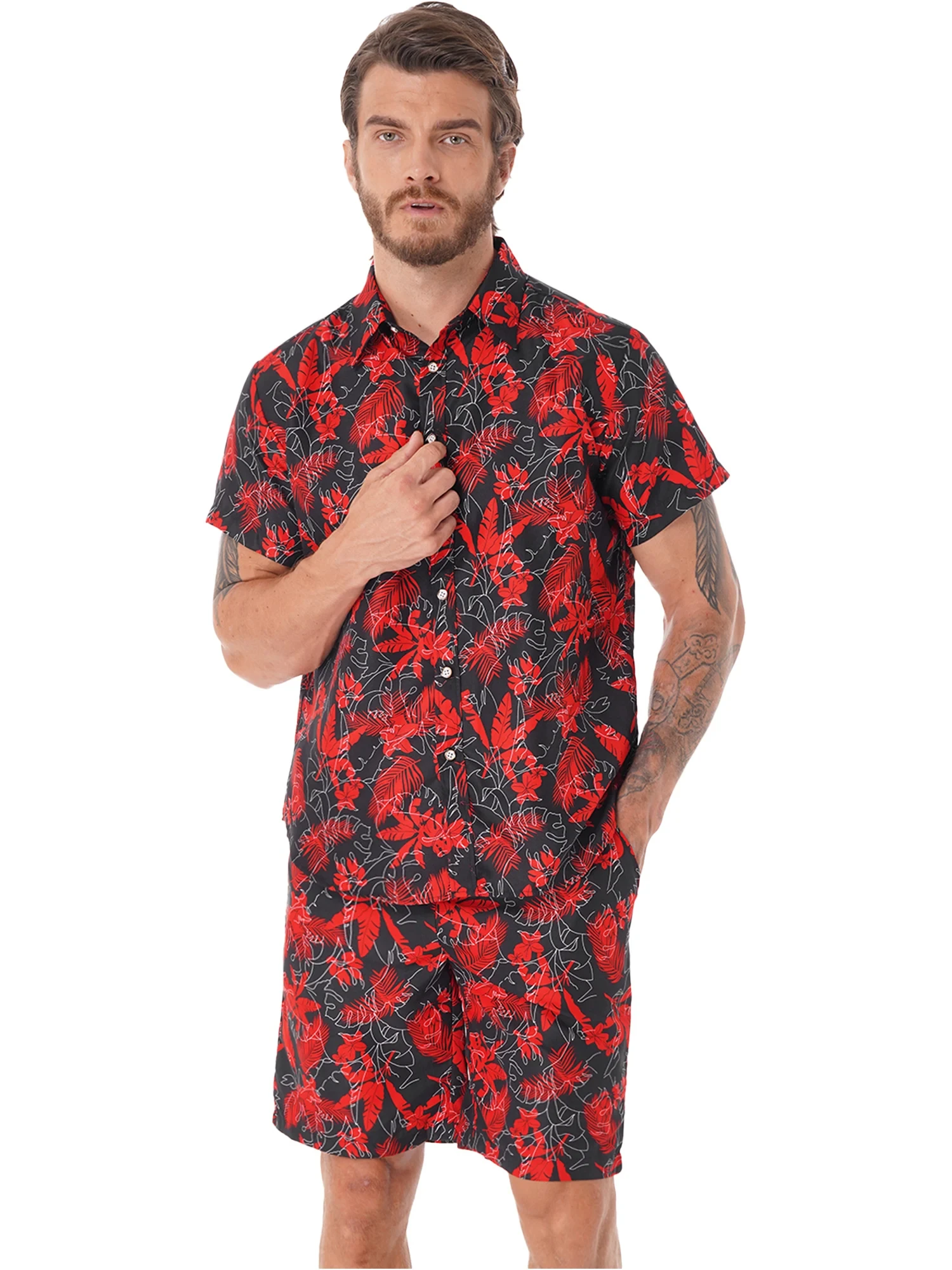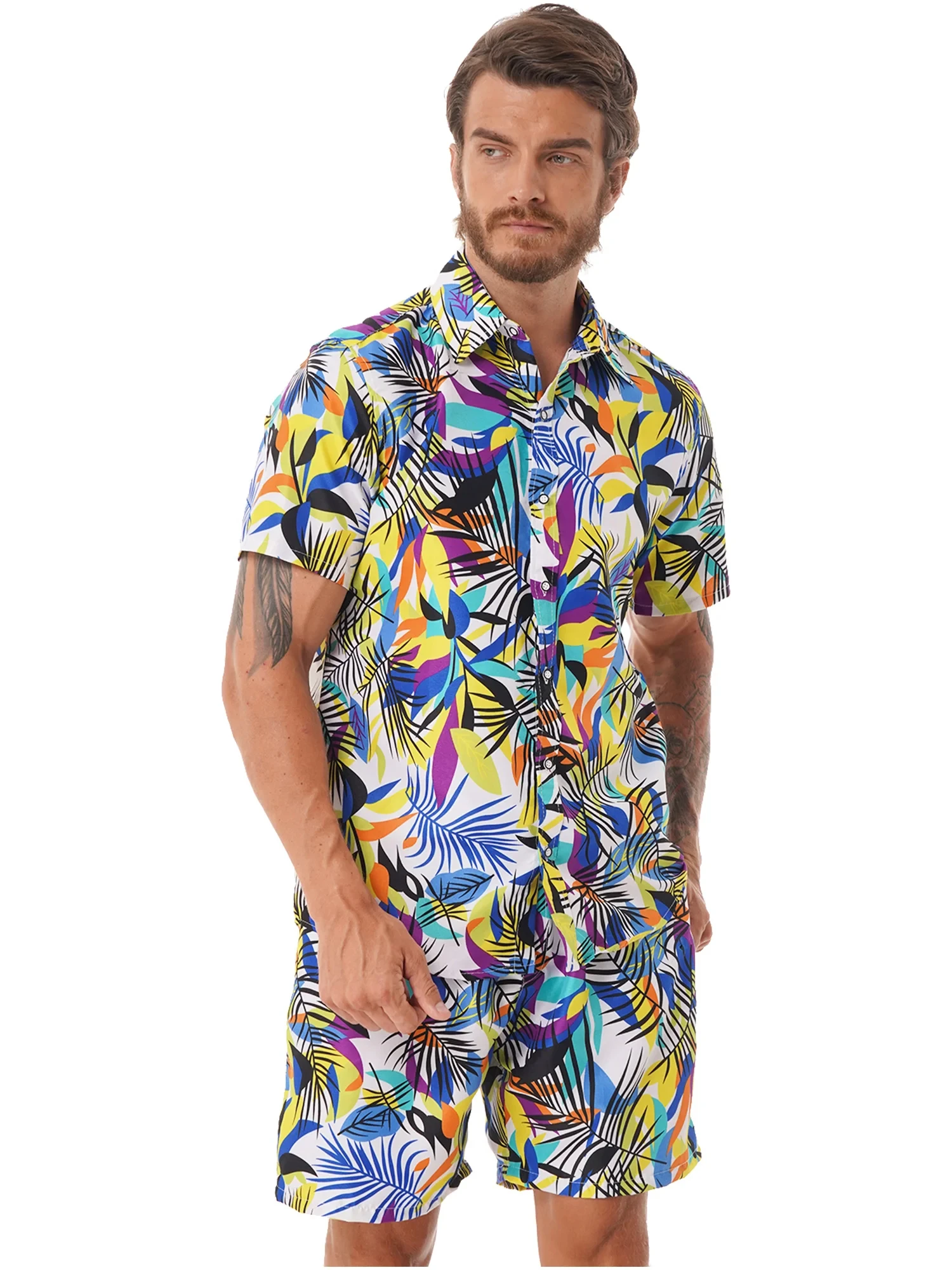 Floral Leaf Printed 2PCS Shirts Suits Men Fashion Shirts+Shorts 3D Two Piece Set