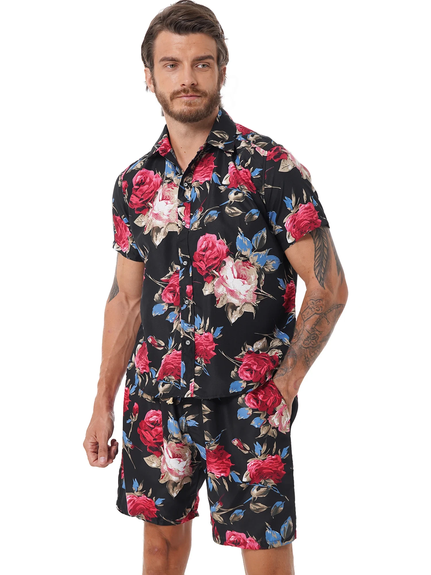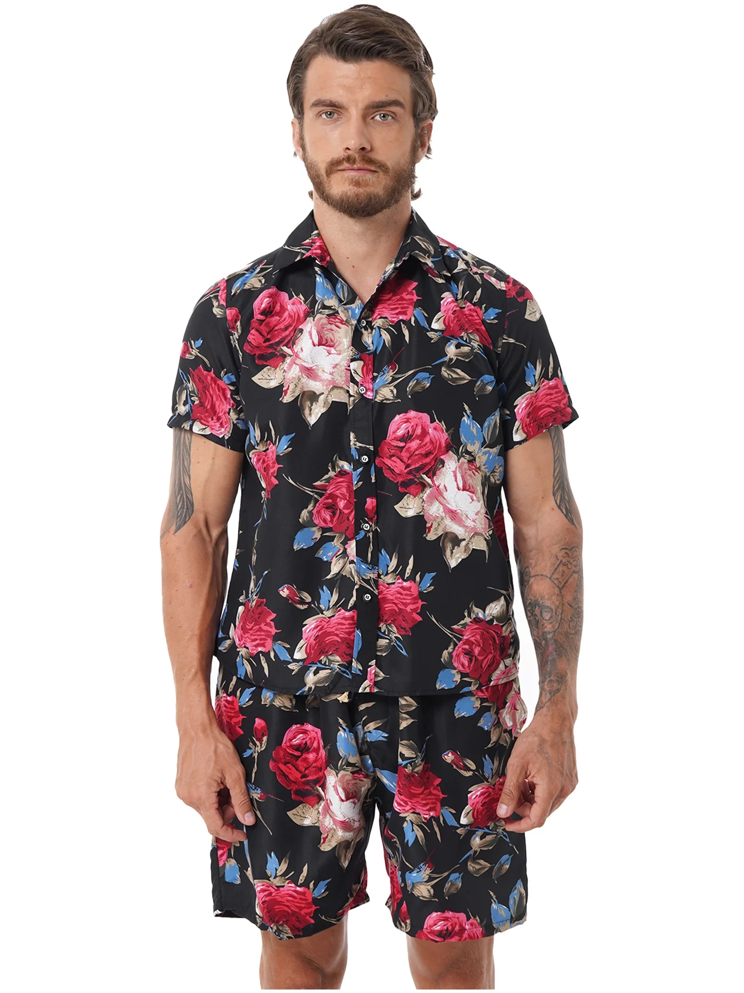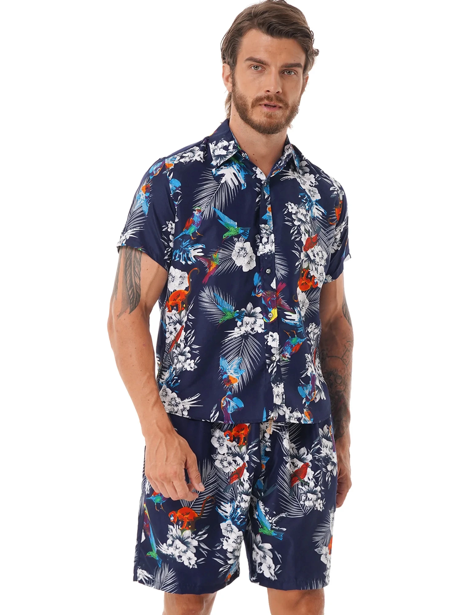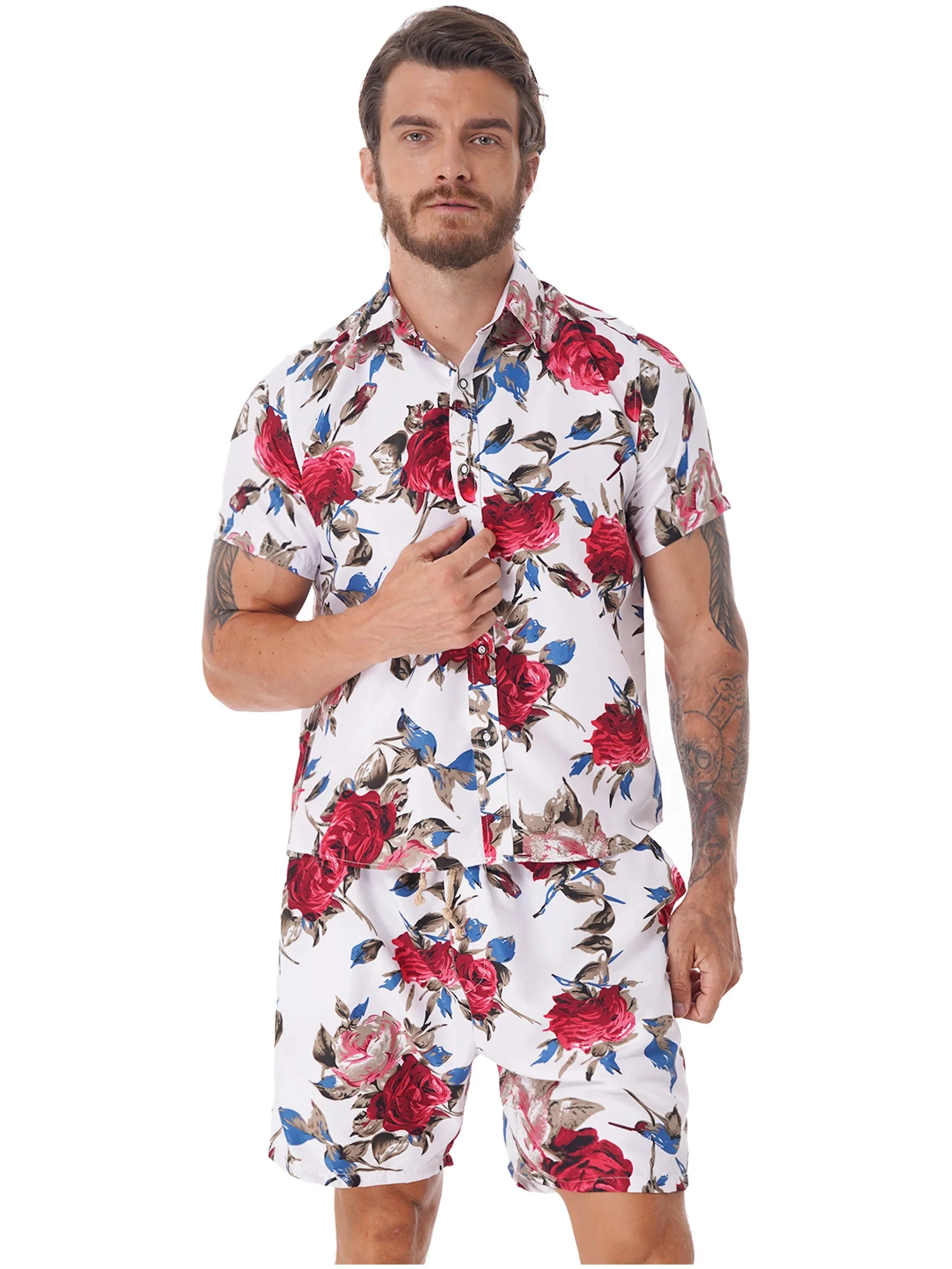 Floral Leaf Printed 2PCS Shirts Suits Men Fashion Shirts+Shorts 3D Two Piece Set