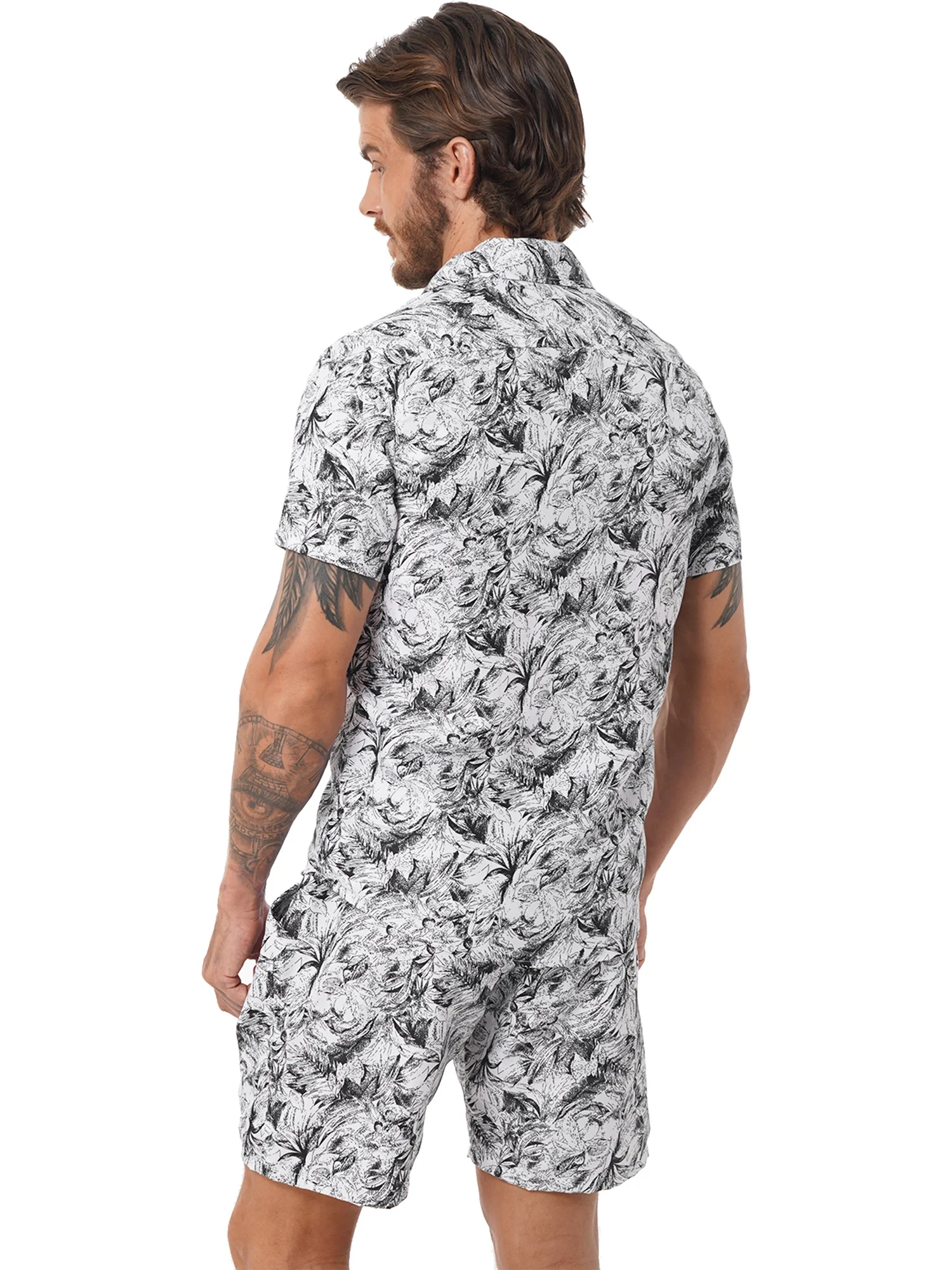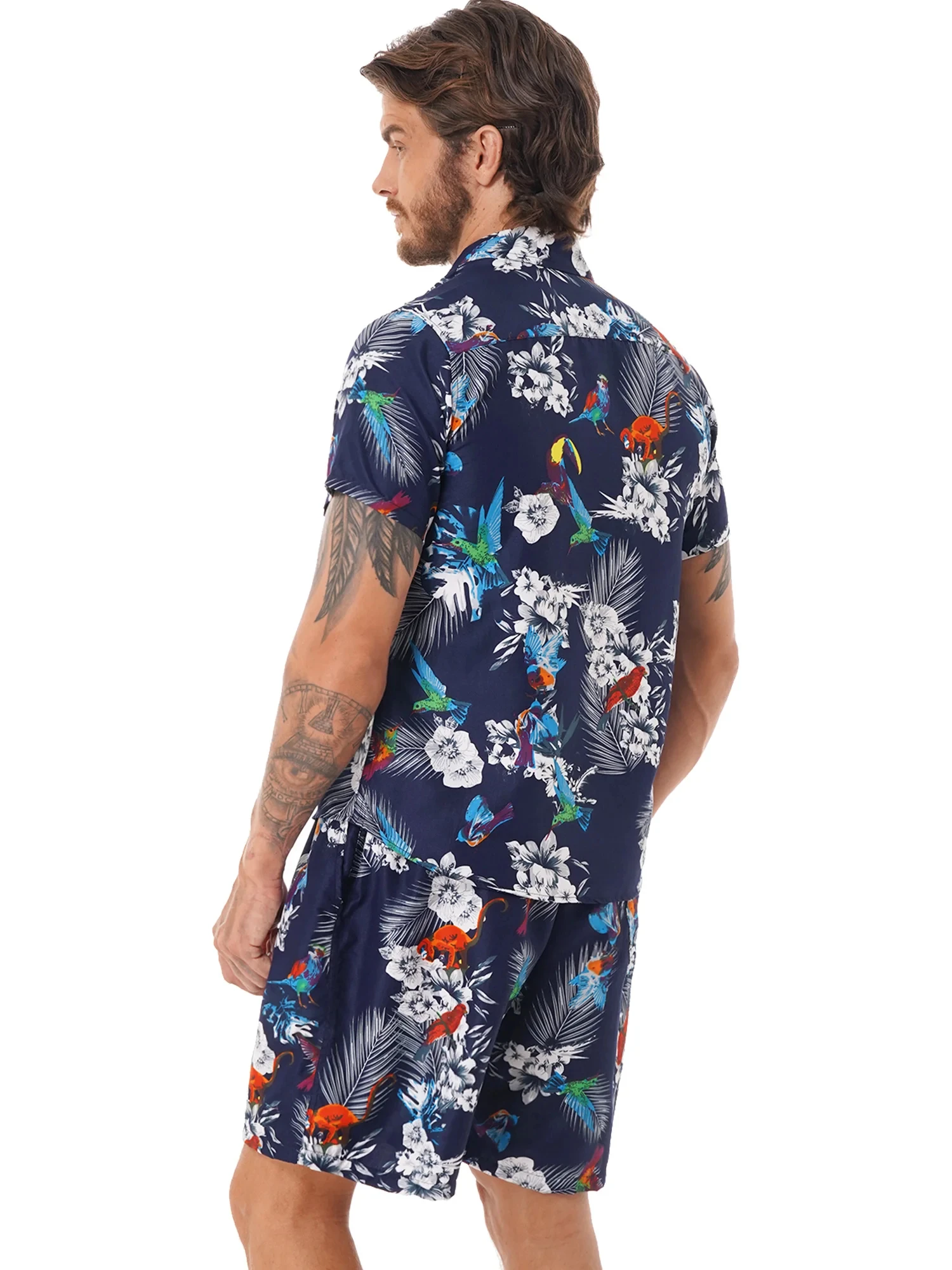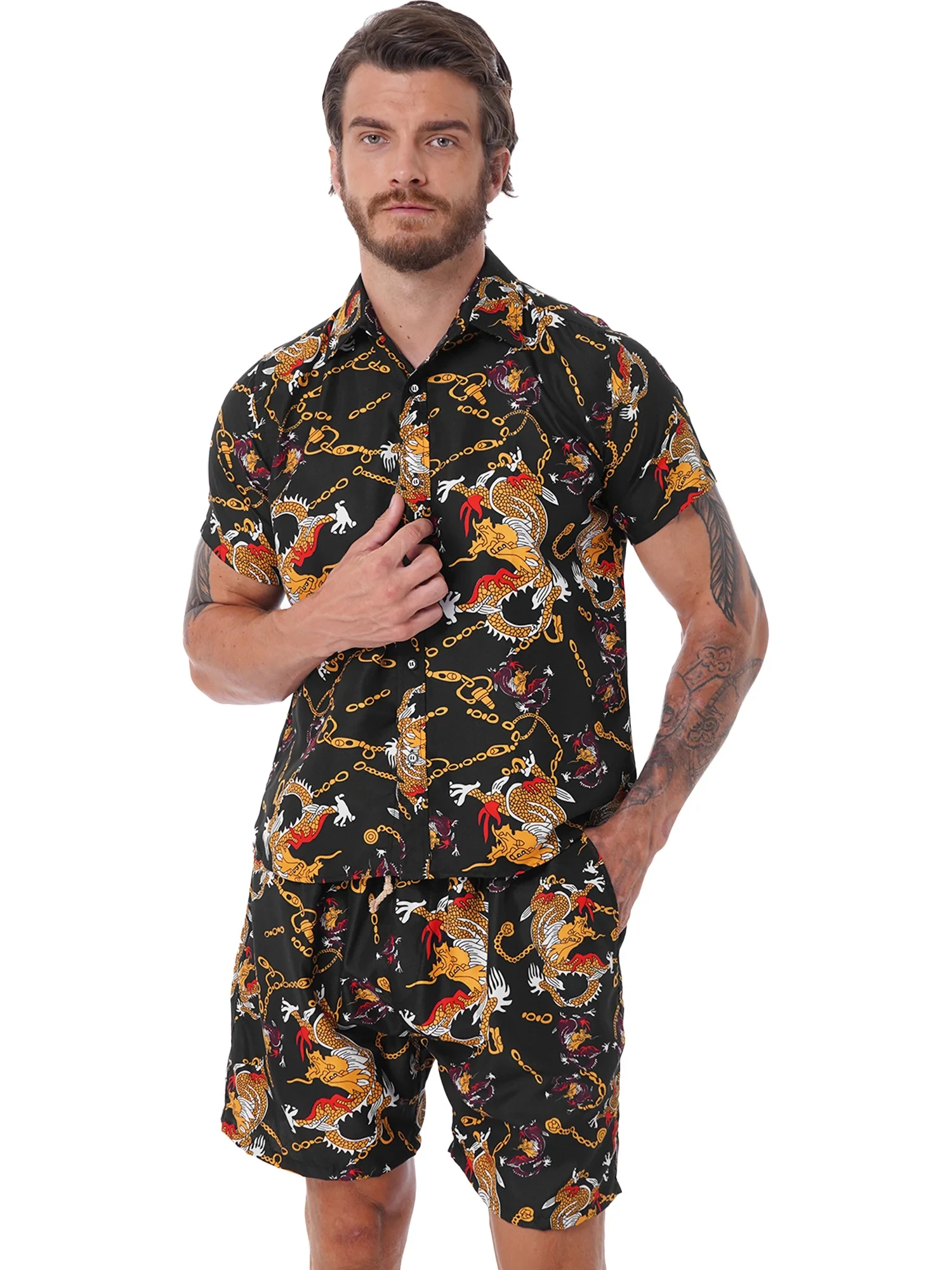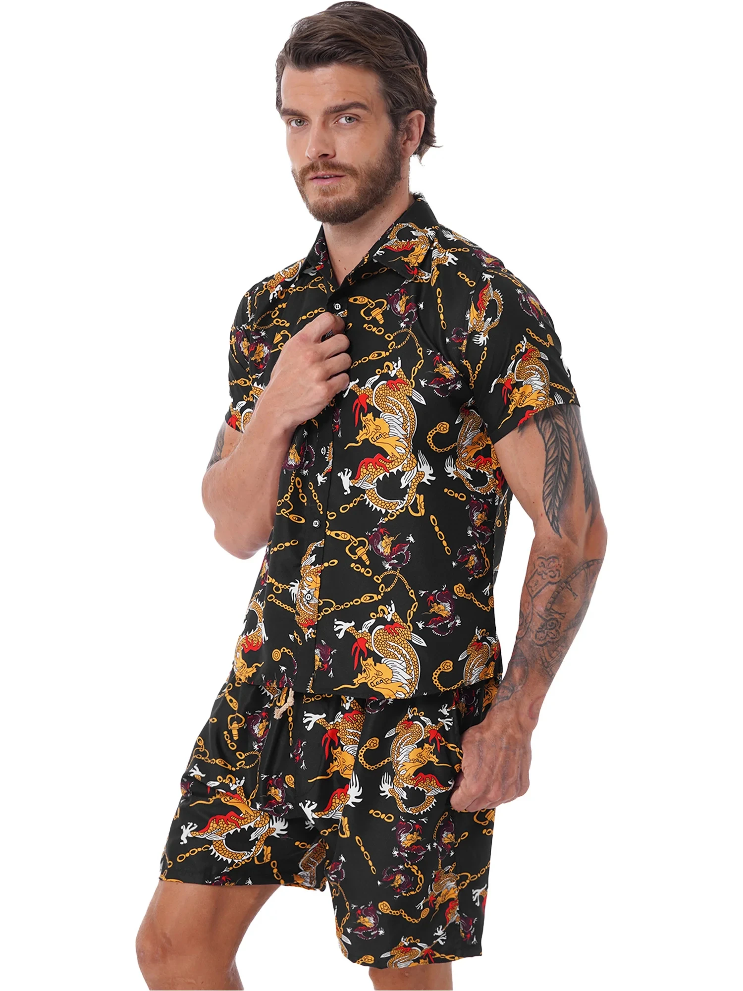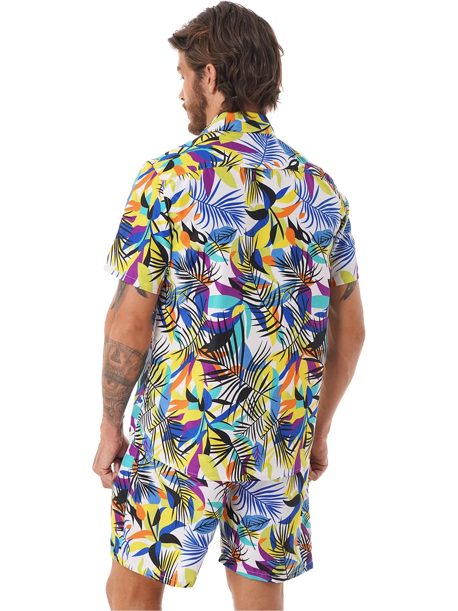 Floral Leaf Printed 2PCS Shirts Suits Men Fashion Shirts+Shorts 3D Two Piece Set
