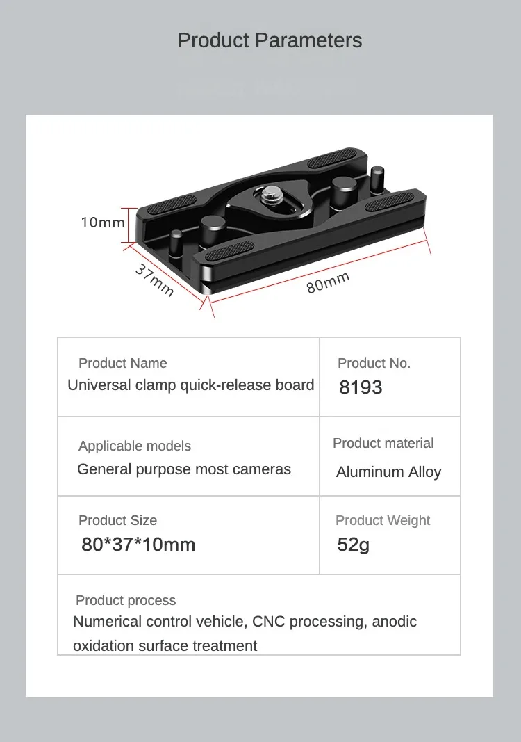 For Block ARCA Tripod Monopod Quick Release Plate for DSLR Camera Accessories Ca