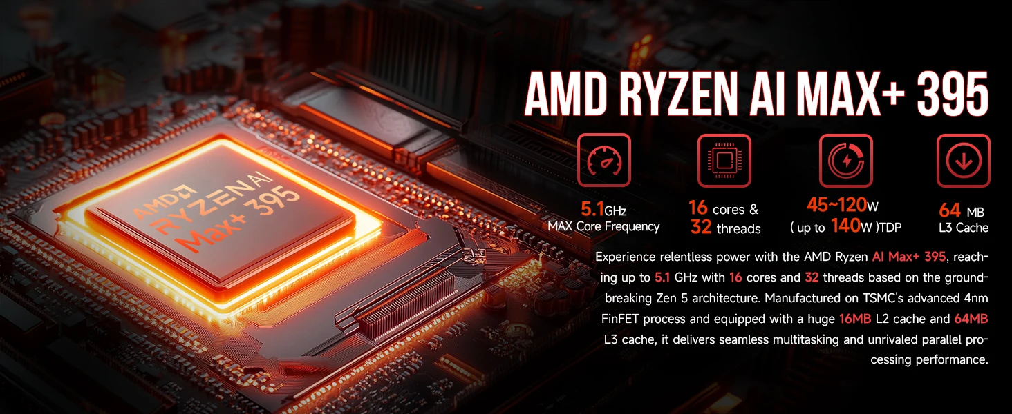 GMKtec EVO-X2 AMD Ryzen AI Max+ 395 (Turbo 5.1GHz, 16C/32T) Mini Gaming PC