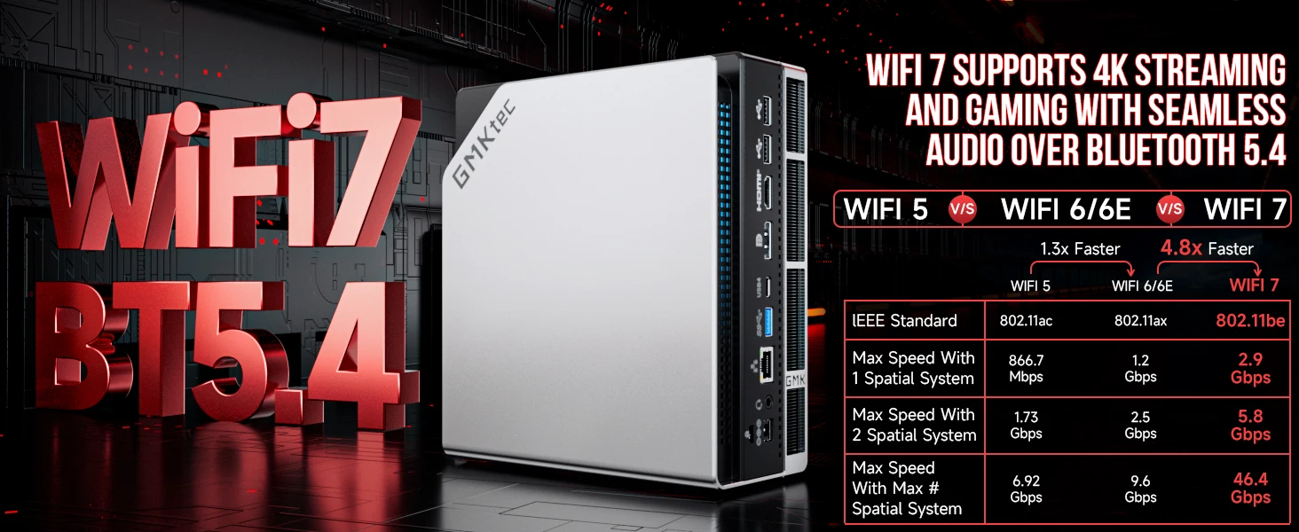 Wireless LAN: 2.5G LAN (RJ45) 8125BG Chipset | WiFi 7 BT5.4 RZ717 Chipset
