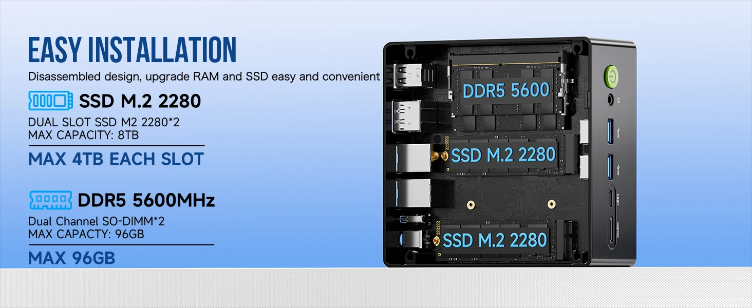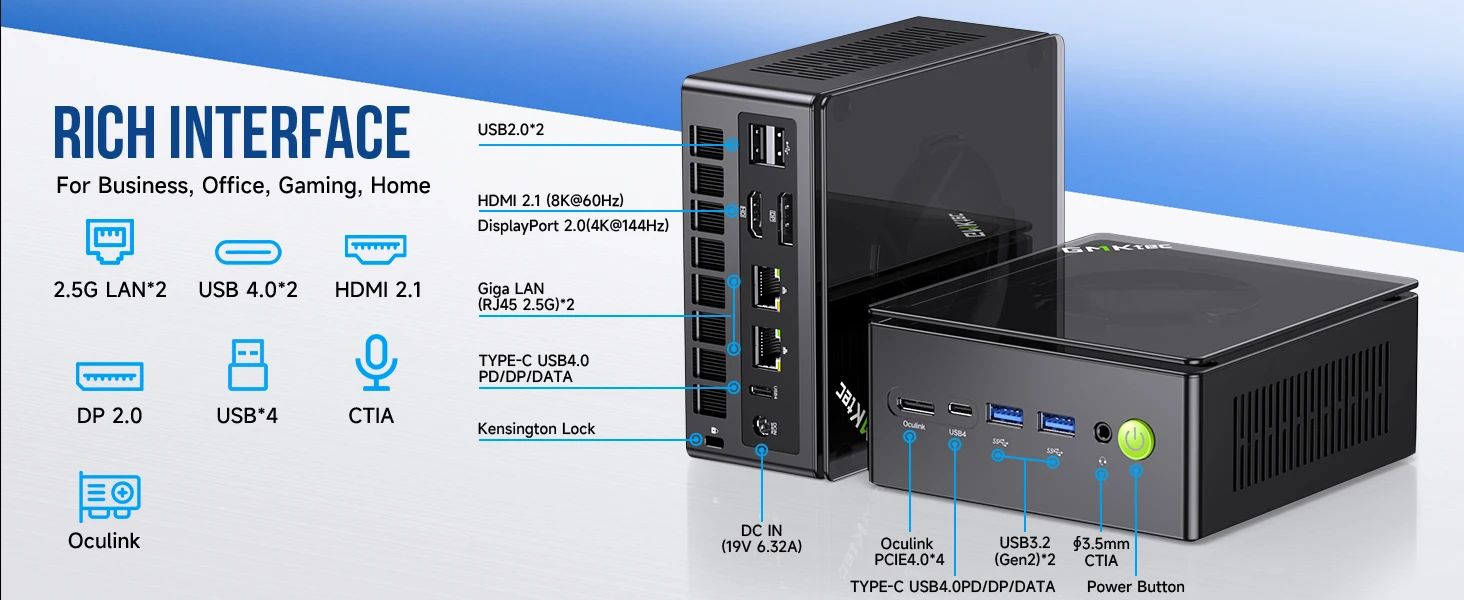 GMKtec K8 Plus Ryzen 7 8845HS MINI PC Windows 11 Pro WIFI6 BT5.2 Oculink Desktop