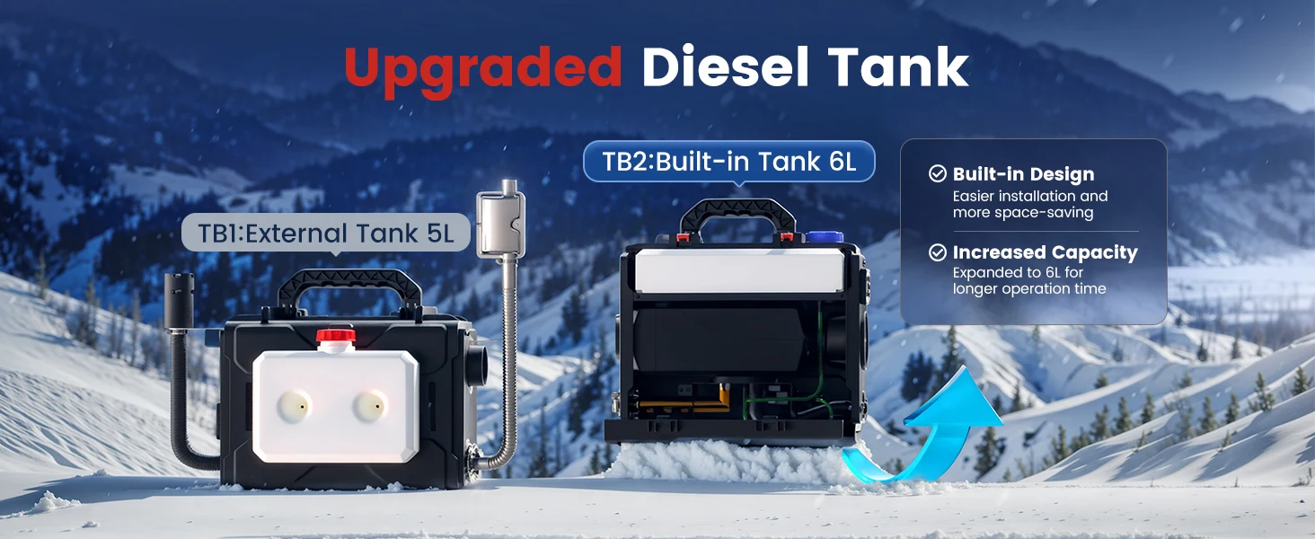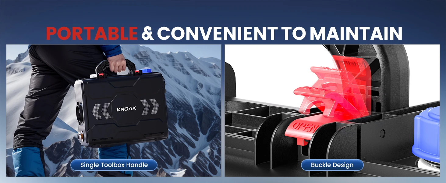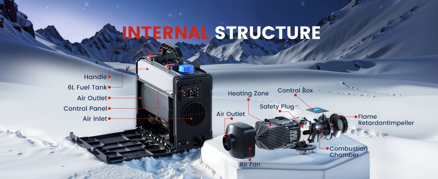 New Toolbox Design: The compact, toolbox-style heater comes with an integrated 6L fuel tank. All-in-one box with a built-in handle, this portable diesel heater is easy to transport, install, and maintain. Whether you’re using it for your RV, truck, or outdoor adventures, its compact design makes it convenient and hassle-free.