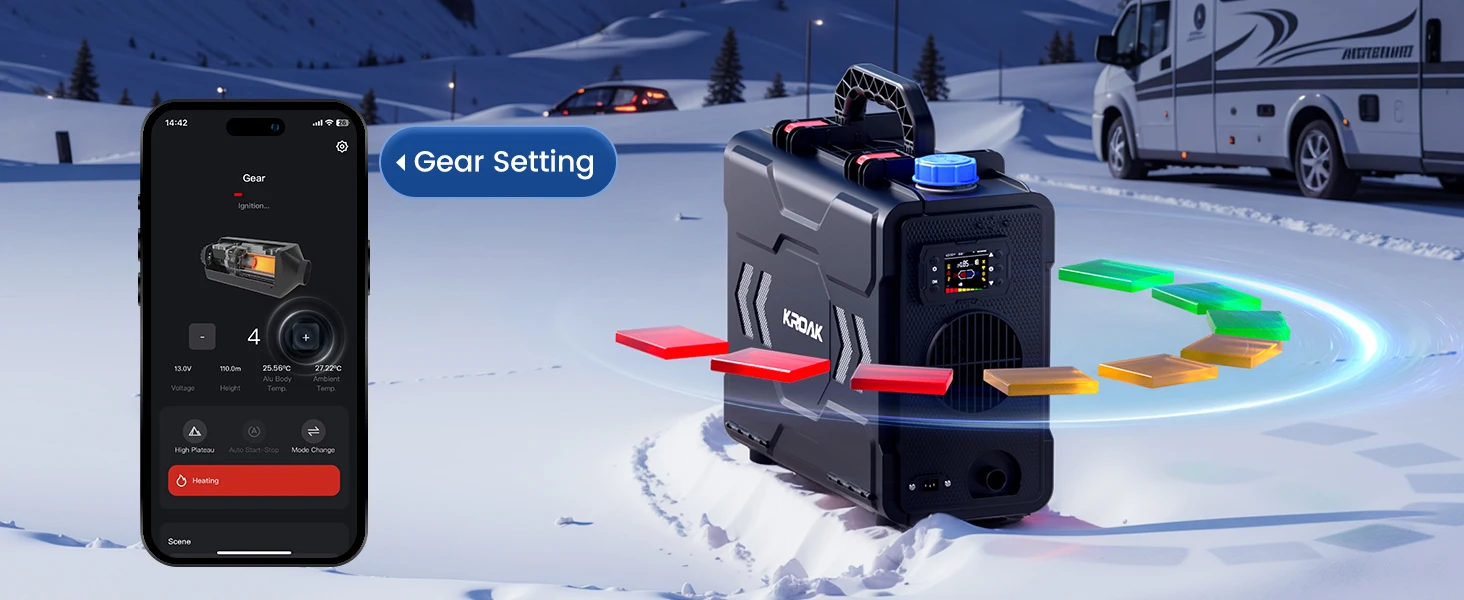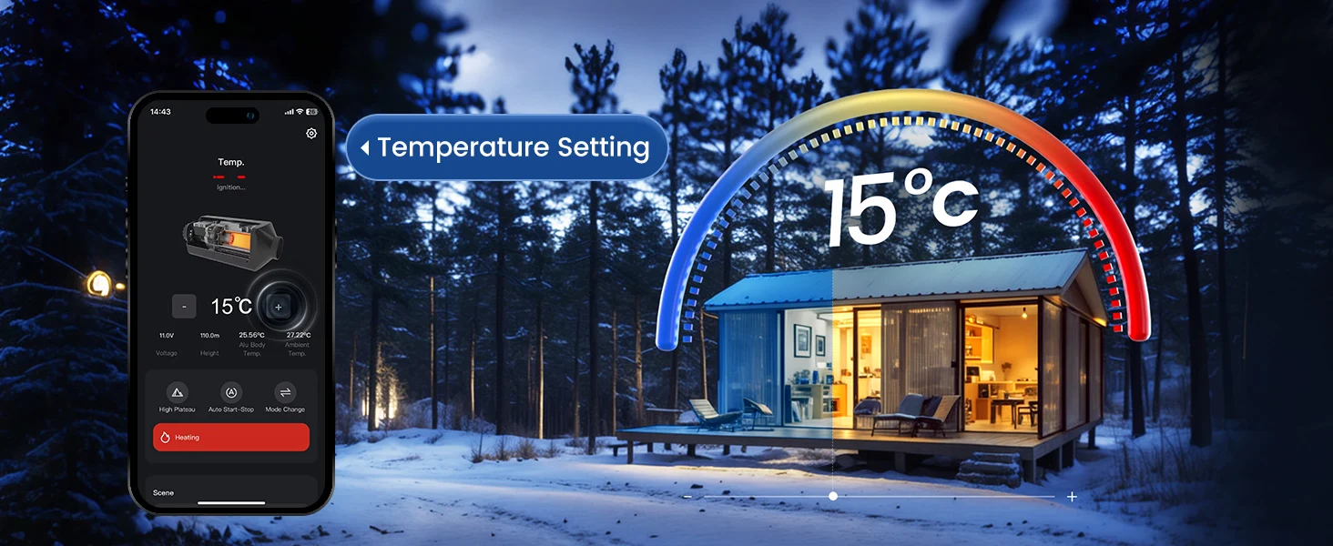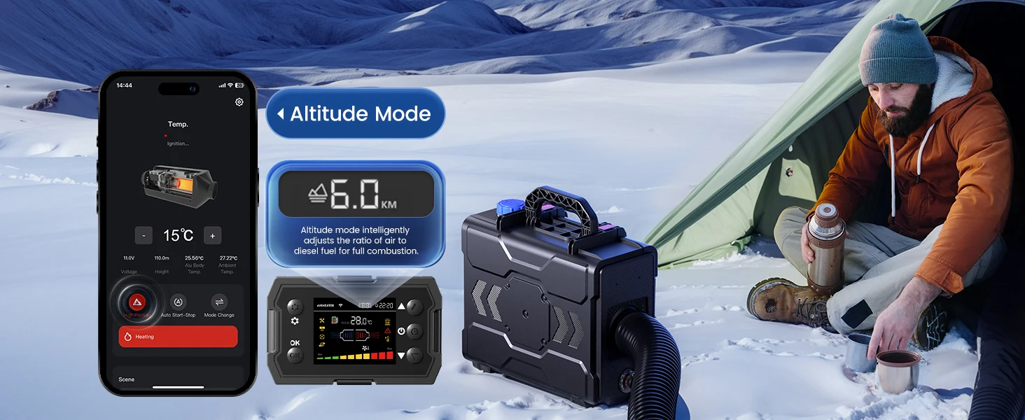 Smart APP Control: Remotely control your heater with the Bluetooth app. Adjust temperatures, set timers, and activate altitude mode to ensure full combustion efficiency at higher elevations.