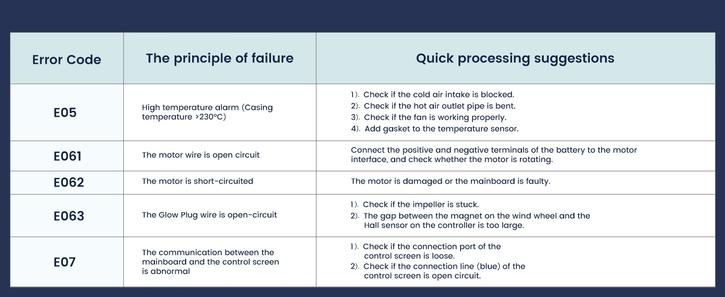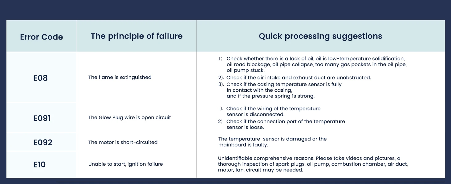 Comprehensive Protection Features: Equipped with over-heating, short-circuit, reverse connection, and over-voltage protections, this diesel heater ensures safe, worry-free operation in any environment.