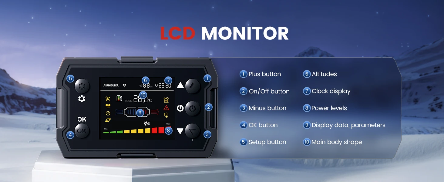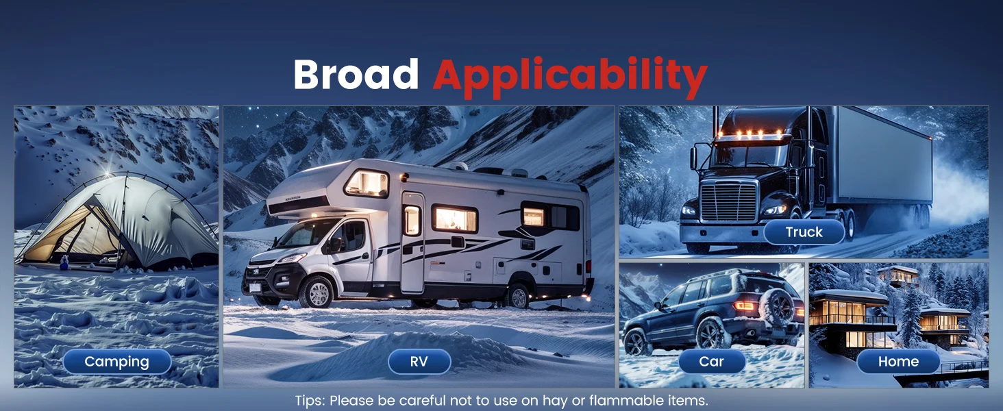 Dual Power Options: This versatile diesel heater supports both 12V/24V DC and 110V/220V AC power sources, making it suitable for a wide range of vehicles and locations, whether on the road or at home.