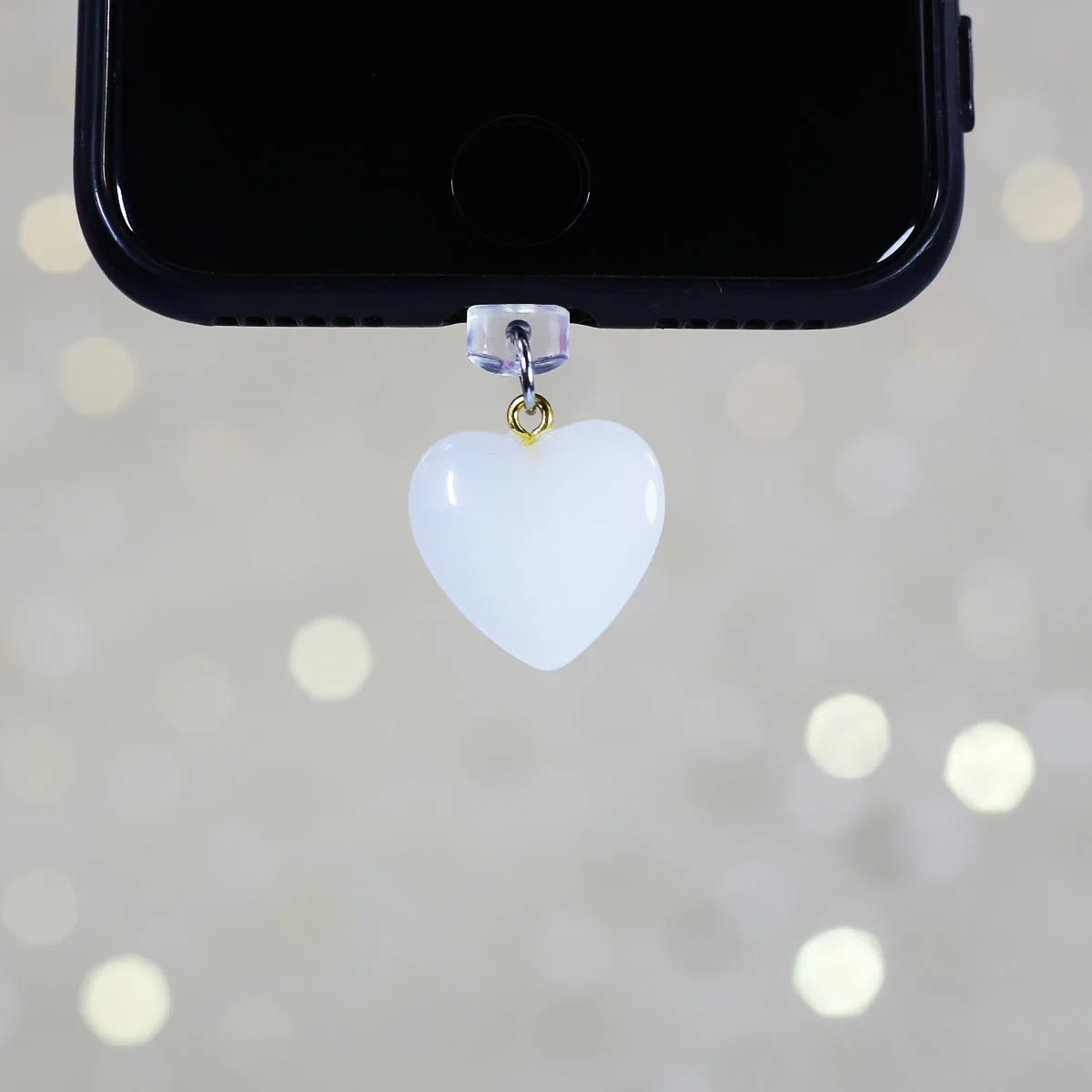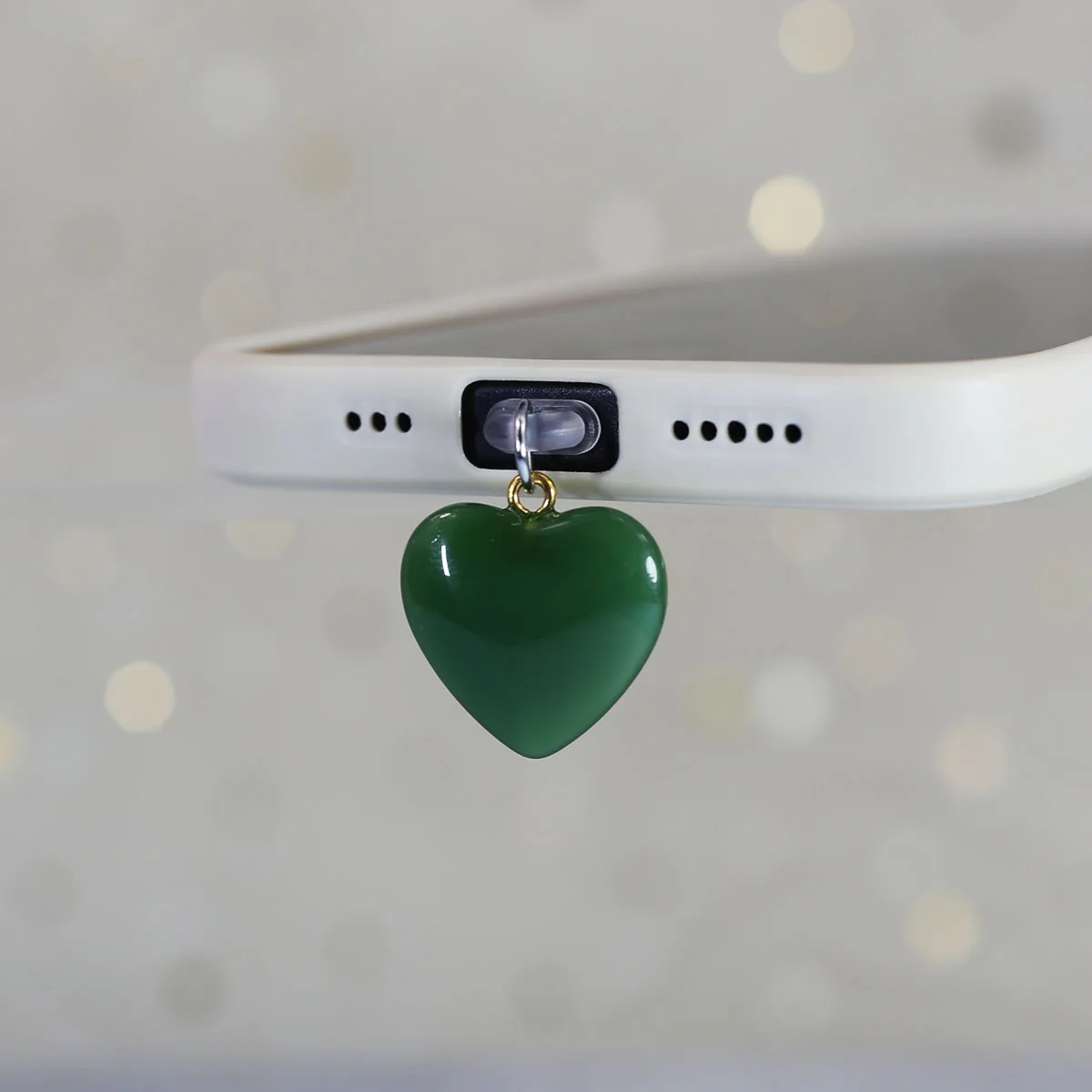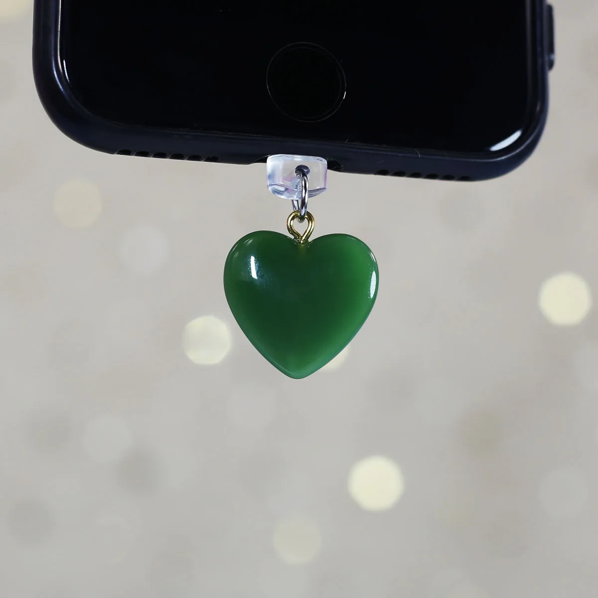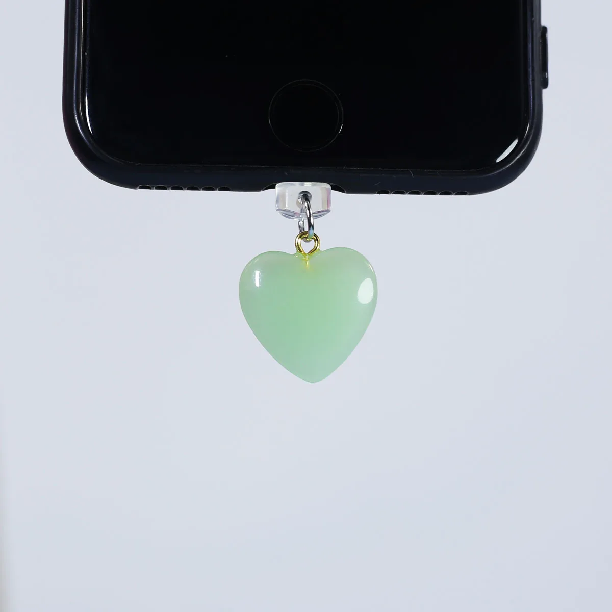 Imitation Jade Glass Heart-shaped Phone Dust Plug Hanging Accessory Decoration F