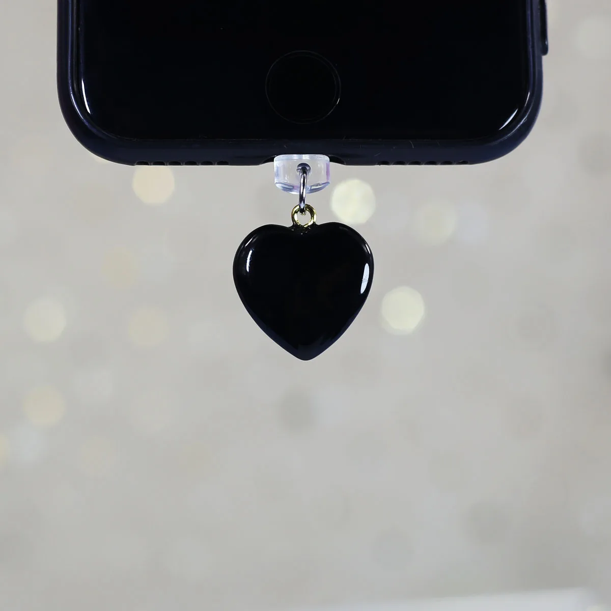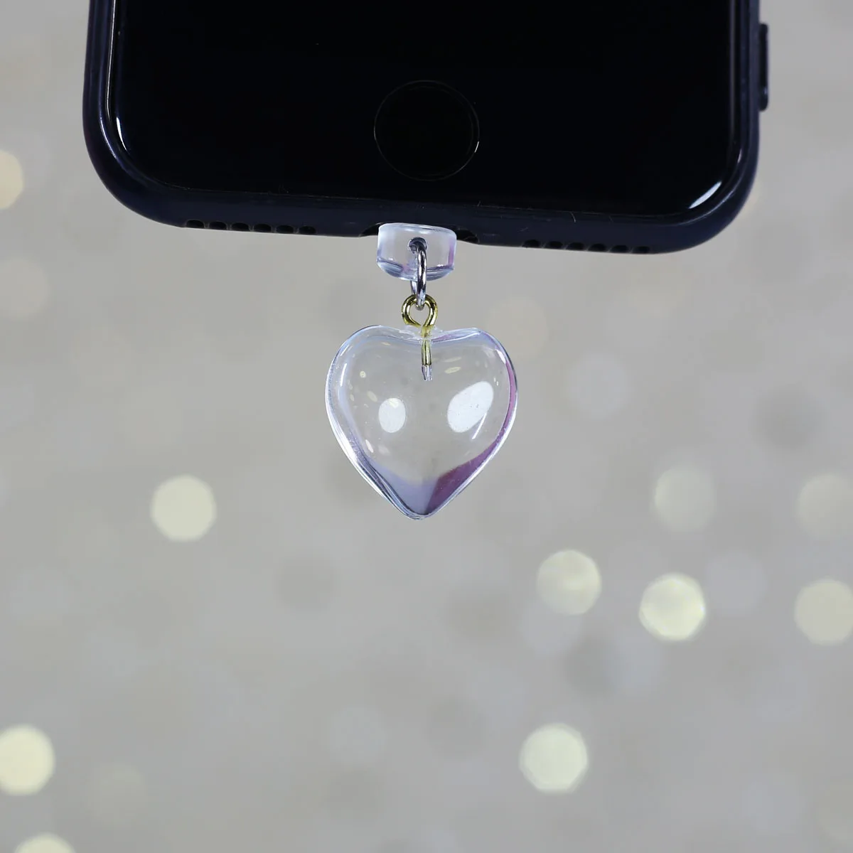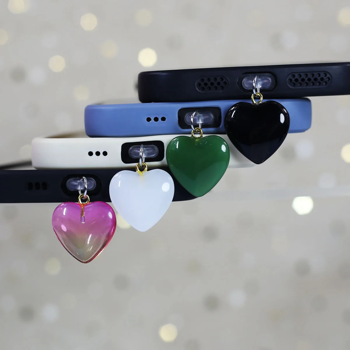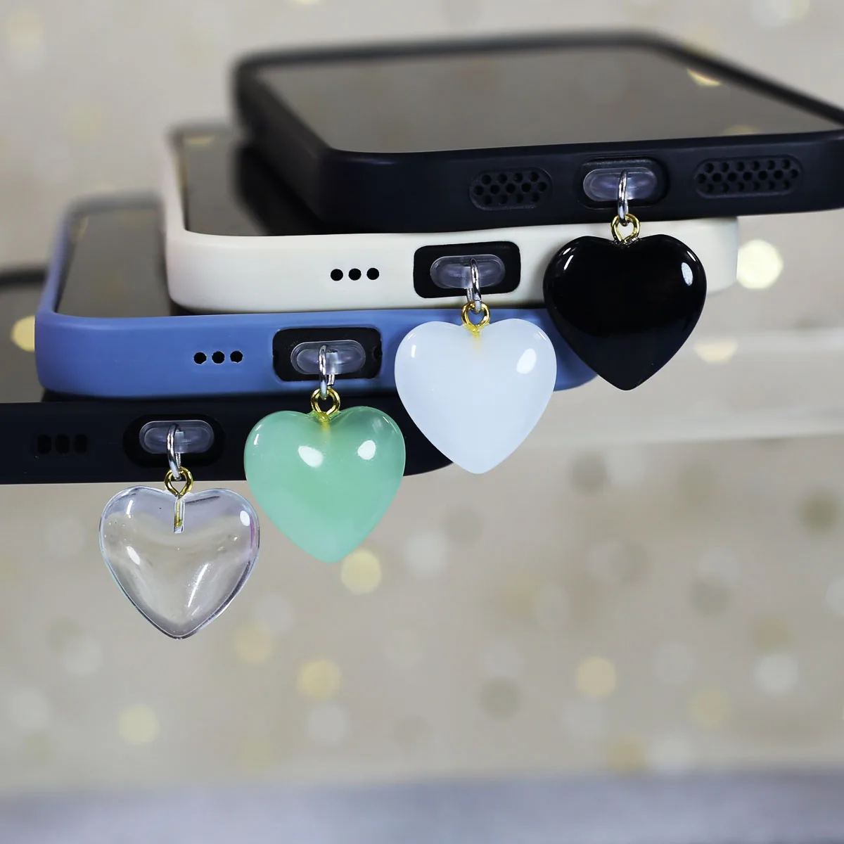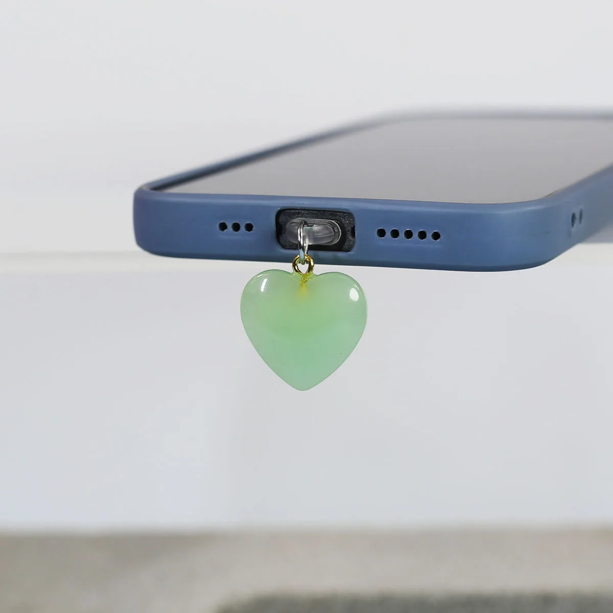Imitation Jade Glass Heart-shaped Phone Dust Plug Hanging Accessory Decoration F