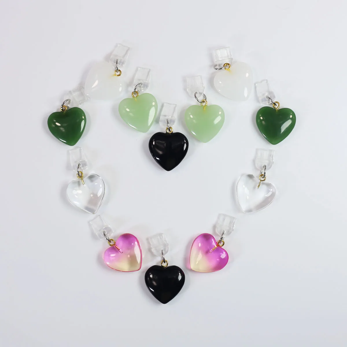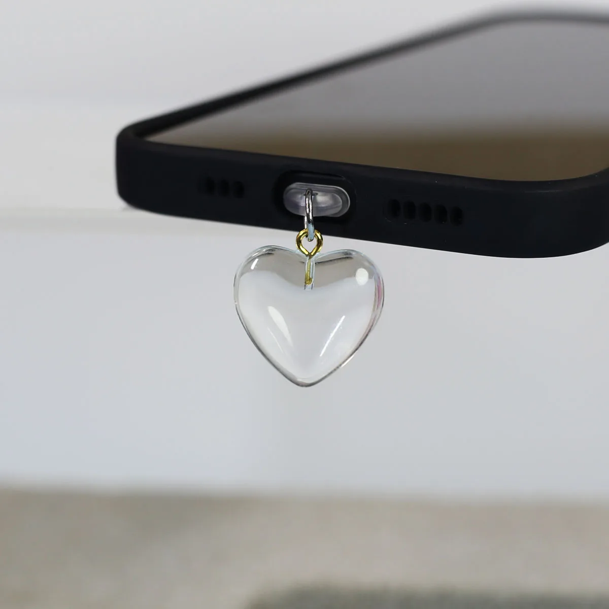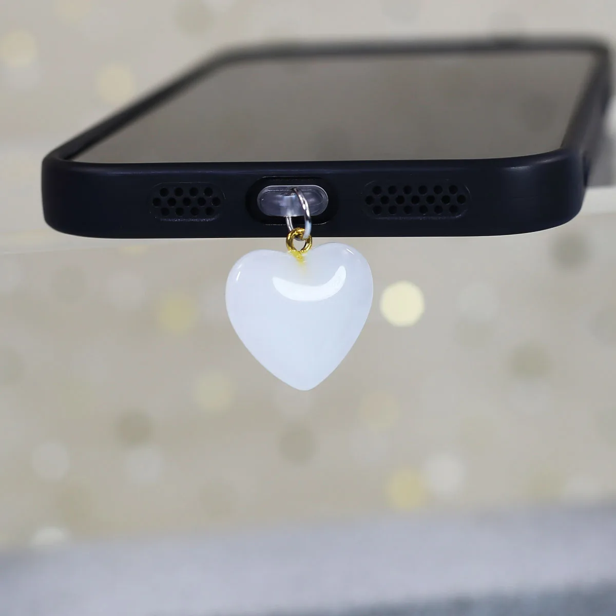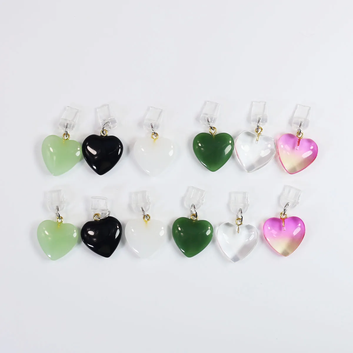 Imitation Jade Glass Heart-shaped Phone Dust Plug Hanging Accessory Decoration F