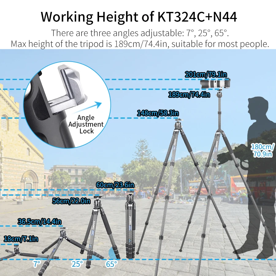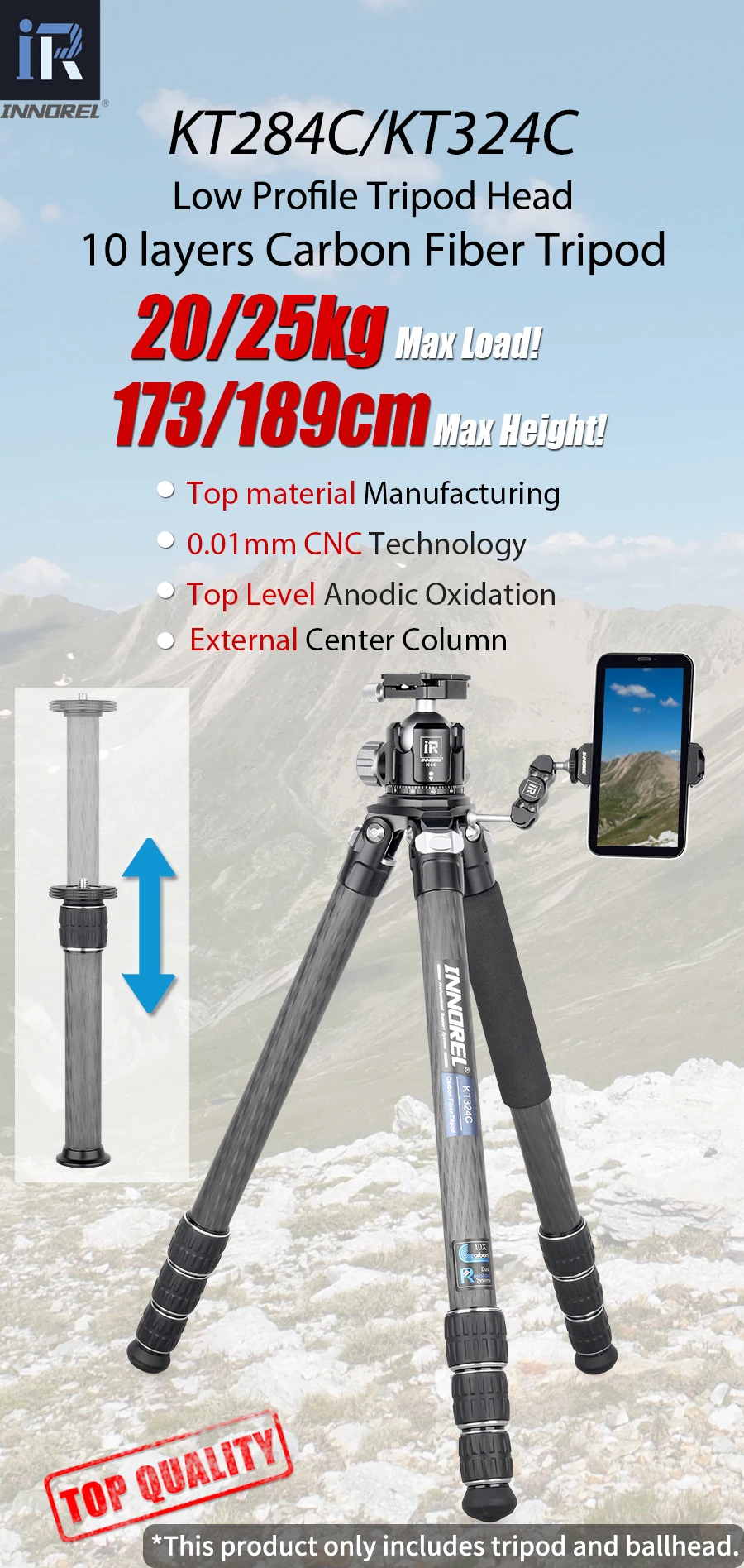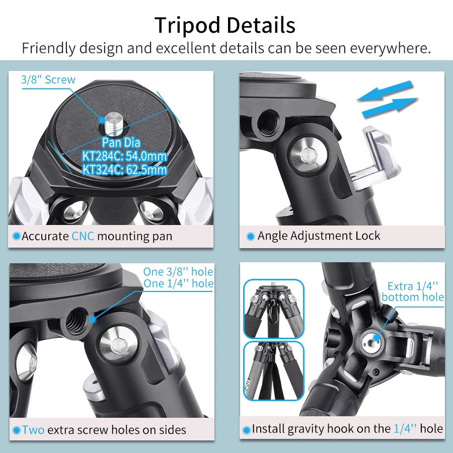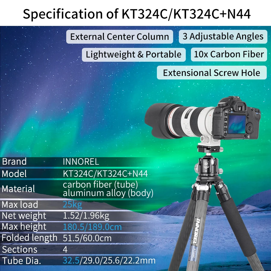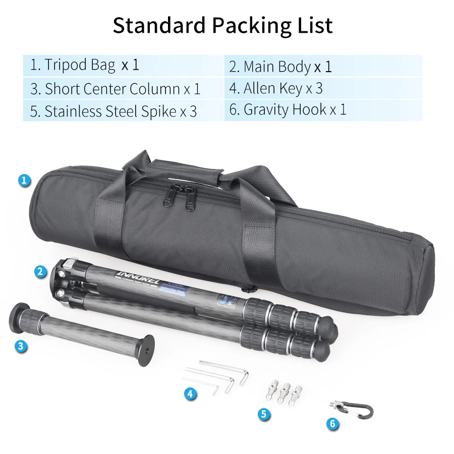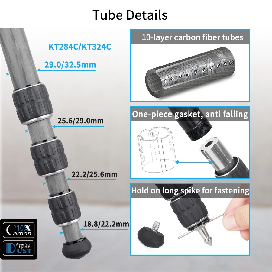 【HIGH QUALITY】Made of high quality genuine 10 layers carbon fiber,the tubes are lighter and stronger,other main parts are made with CNC and Anodic Oxidation technology, which make the surface much better and smoother, the color of tripod more well-distributed and exquisite.