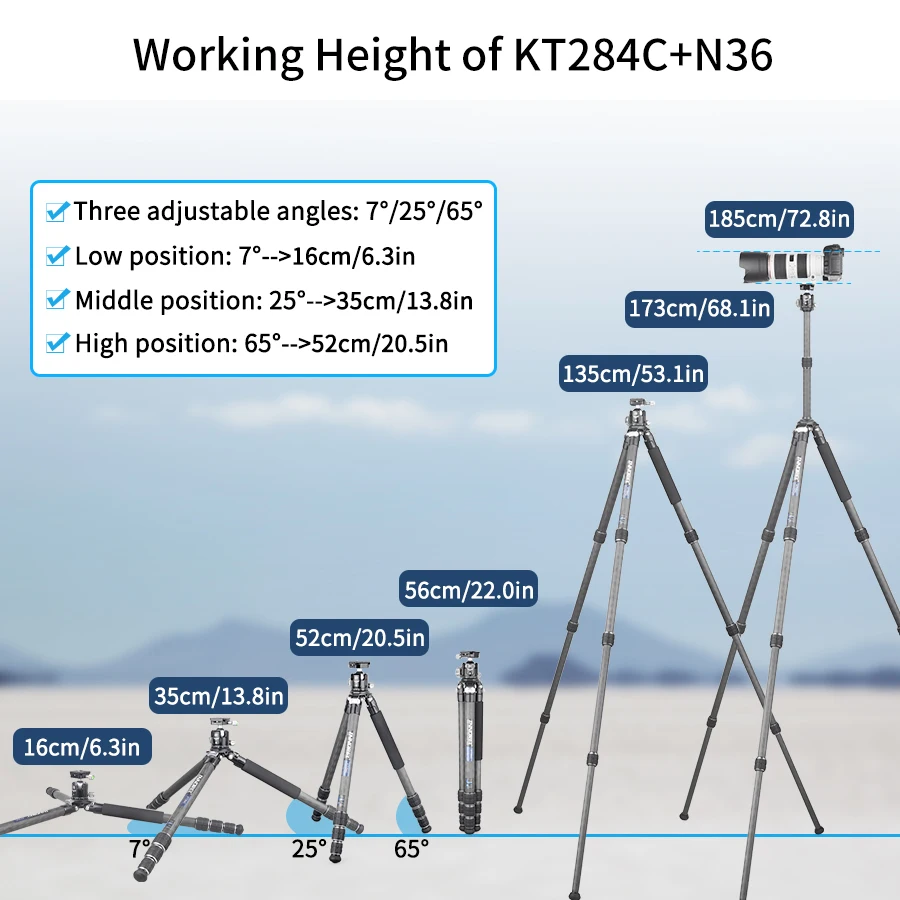 【LOAD CAPACITY & PORTABLE】The max load is up to 20/25kg,it is very stable but the structure of this tripod is very compact,the folded length is only 48/51cm,weighs only 1.2/1.52kg,so it is easy to carry and suitable for traveland outdoor shooting,a more balanced choice in stability and portability.