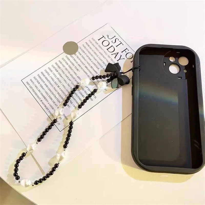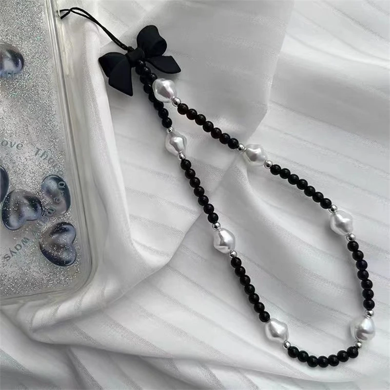 Feature7: Korean Y2K Cute Sweet Black Bow Bead Beaded Phone Chain Charm Lanyard