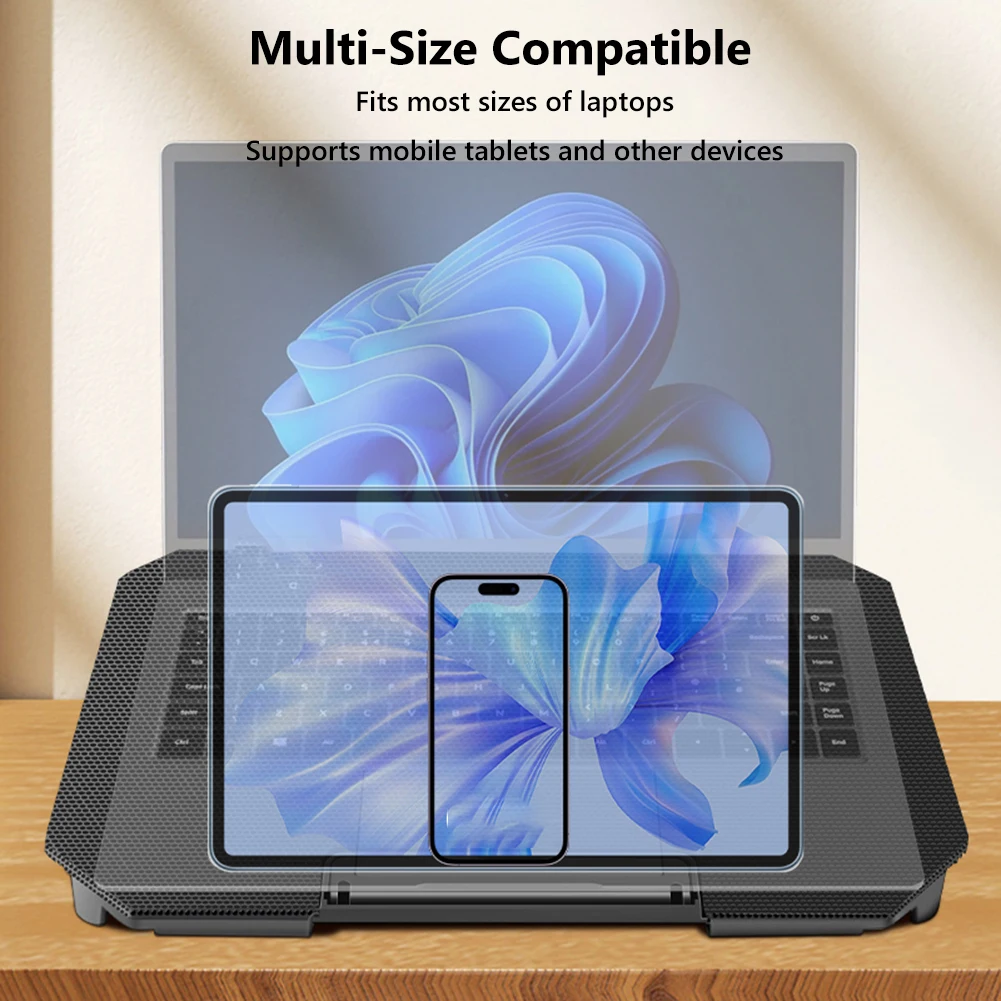 5. Wide application and support: The laptop cooling bracket can be folded and stored, with a portable design that can be carried to the place you need. Suitable for all laptops within 15.6 inches, as well as tablets, phones, routers, set-top boxes, etc.