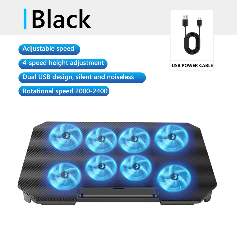 Laptop Cooling Pad with 8 Quiet Fans Notebook Support Dual USB Interface Foldable 360 Rotation for Phones/Tablets Up To 15.6inch