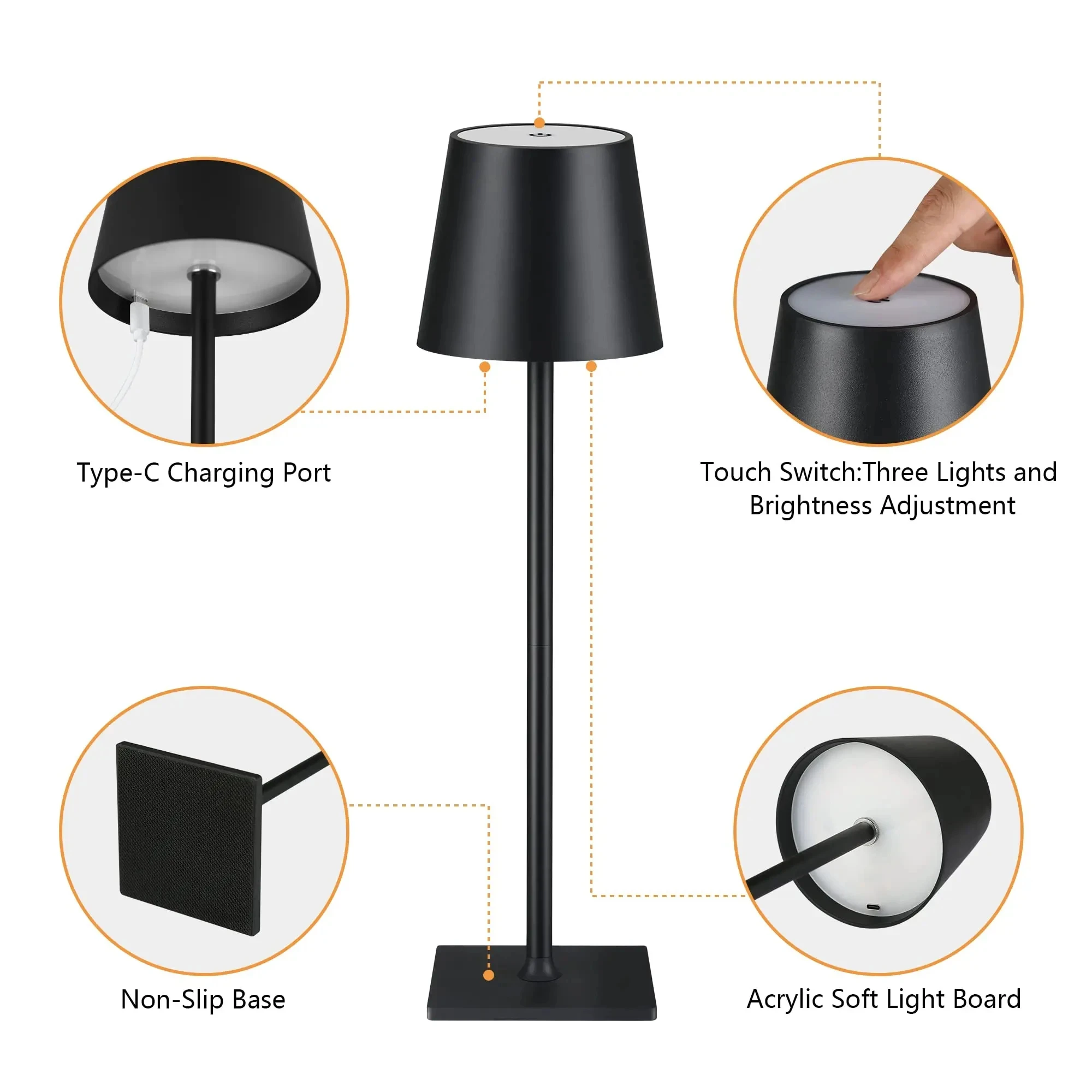 3.Touch switch: click to switch colors: warm white, cool white, nature white, long press to adjust the brightness