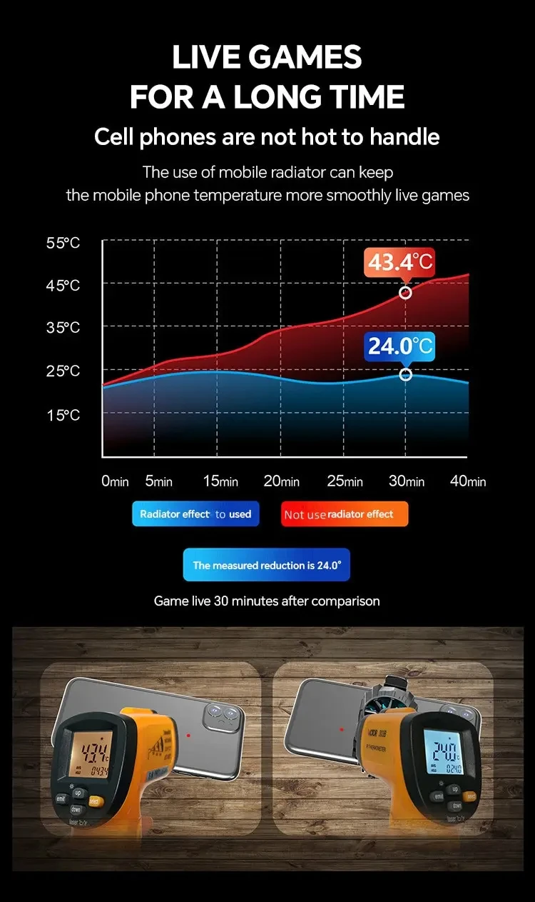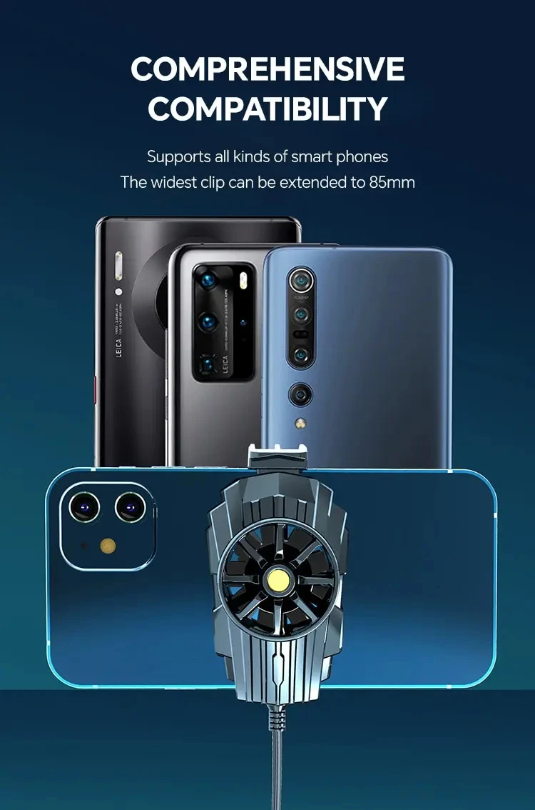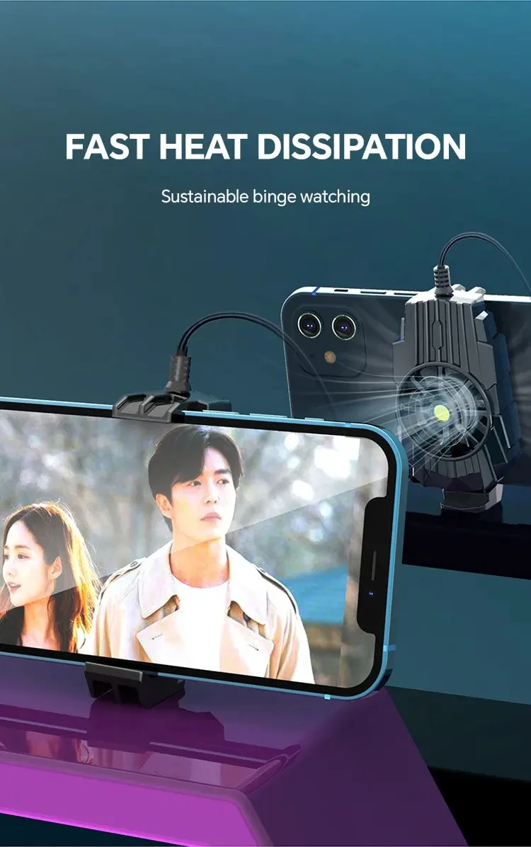 1. The cooler features the strong fan, powerful heat dissipation, turbine exhaust technology for quickly dissipating the mobile phone heat.