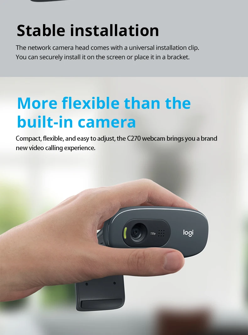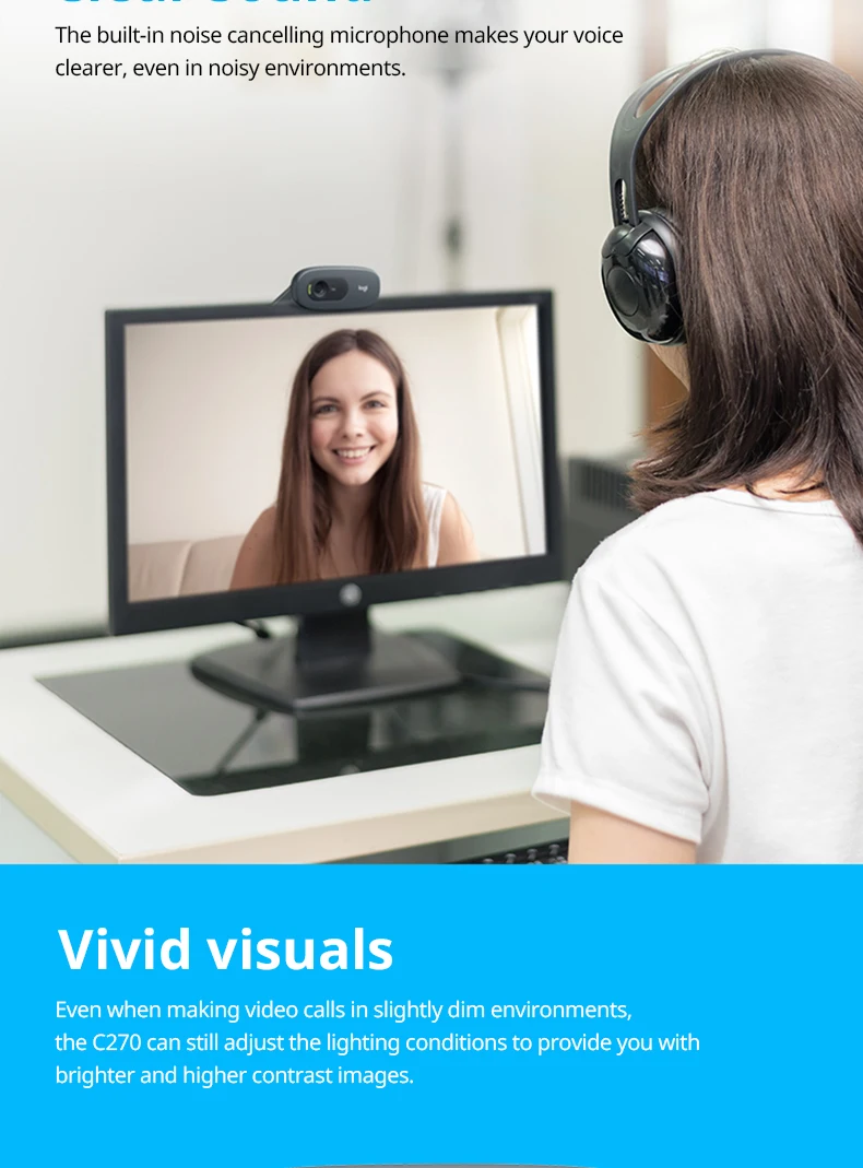 Compact, flexible, and easy to adjust, the C270 webcam brings you a brandnew video calling experience.