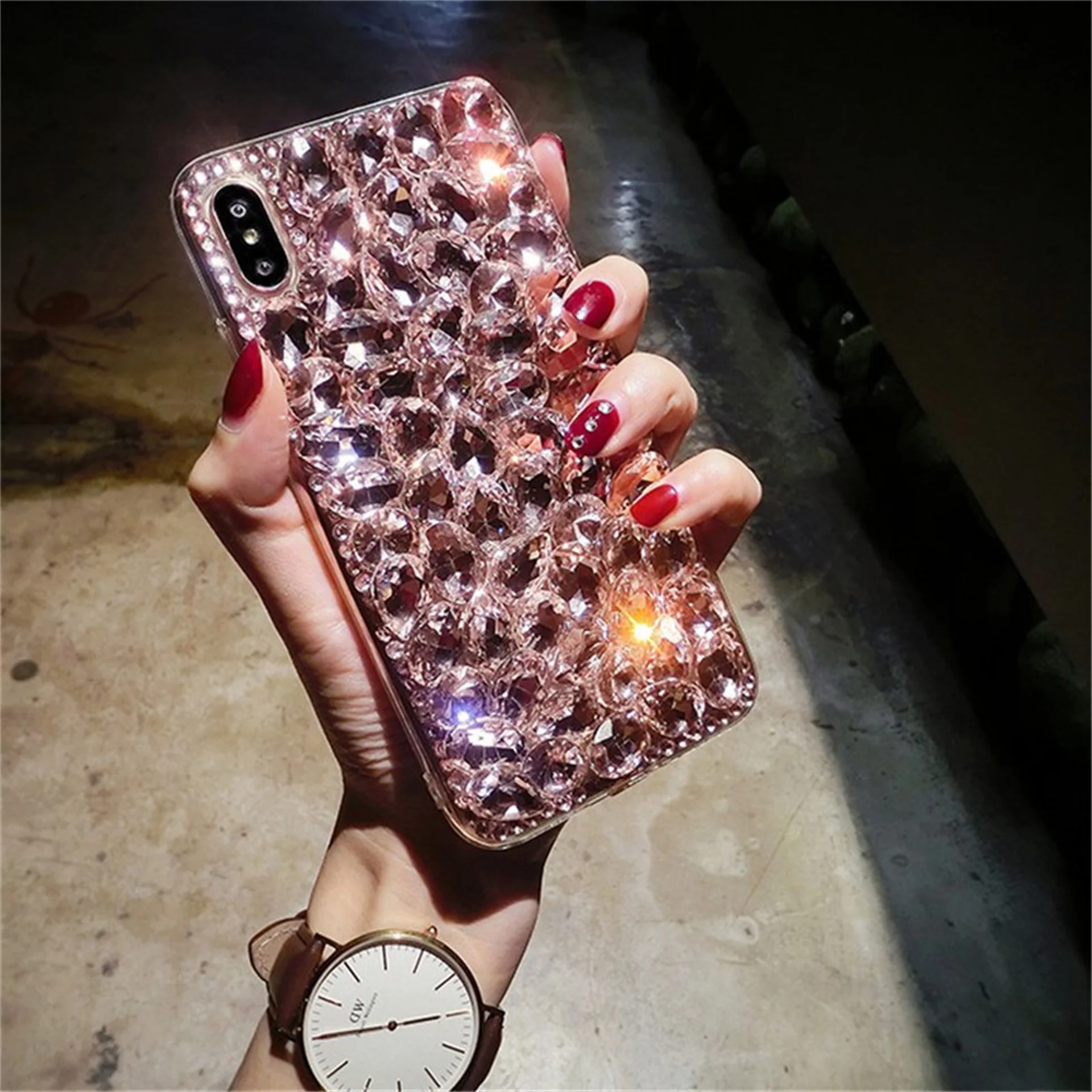 Luxury Rhinestone Phone Case For Samsung S23 S22 S21 S20 Plus Ultra Fe Note 10 20 Galaxy Diamond Glitter Women Pink Cover
