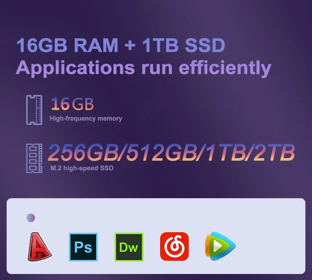 5) 128/256/512/1024GB ROM, solid-state speed, smoother operation, helps you run multiple apps smoothly