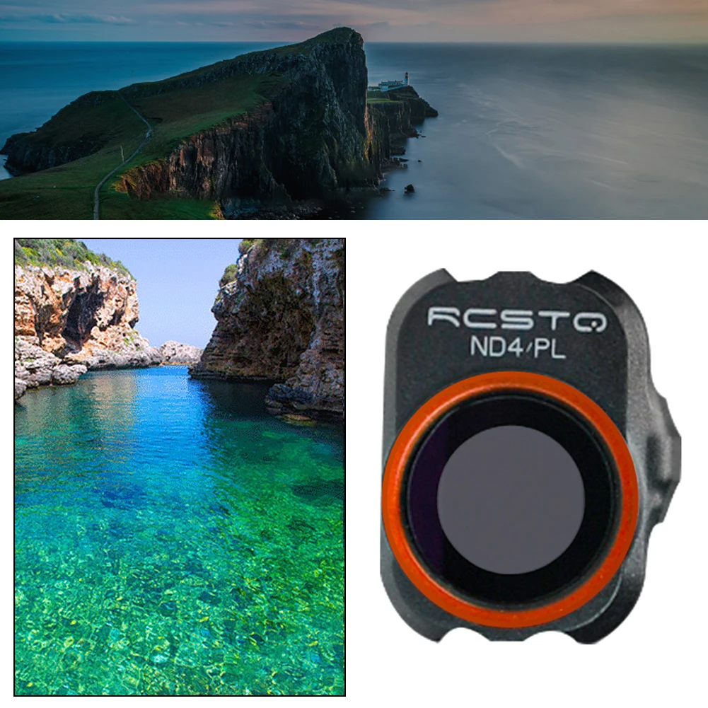 3. ND / PL dimming polarizer: picture: it is adjusted through multi-layer optical lenses. In the strong light environment, it prevents overexposure, resists scattered light, increases color saturation, makes the picture more transparent and gorgeous, and realizes large-scale effects such as foggy water and night light track.