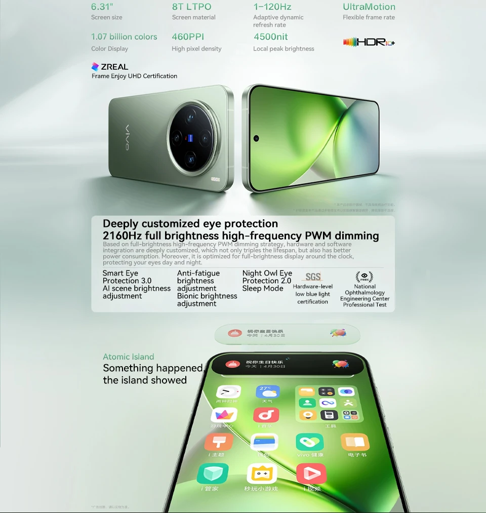 Screen --- 6.31-inch, AMOLED, 2640×1216, HDR, 120Hz