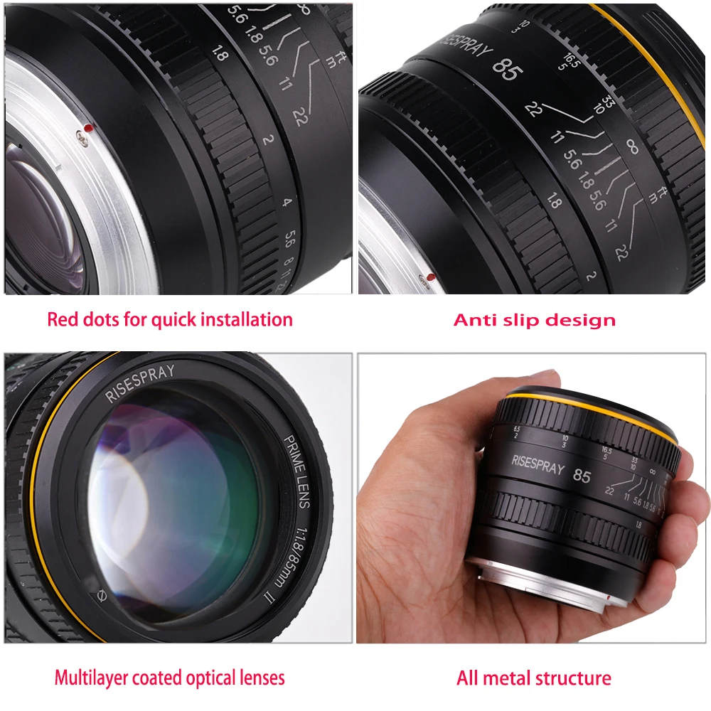 NEW RISESPRAY Full Frame 85MM F1.8 Metal Manual Camera Lens For Canon-EF/RF NIKON-F/Z SONY-E FIJI-FX
