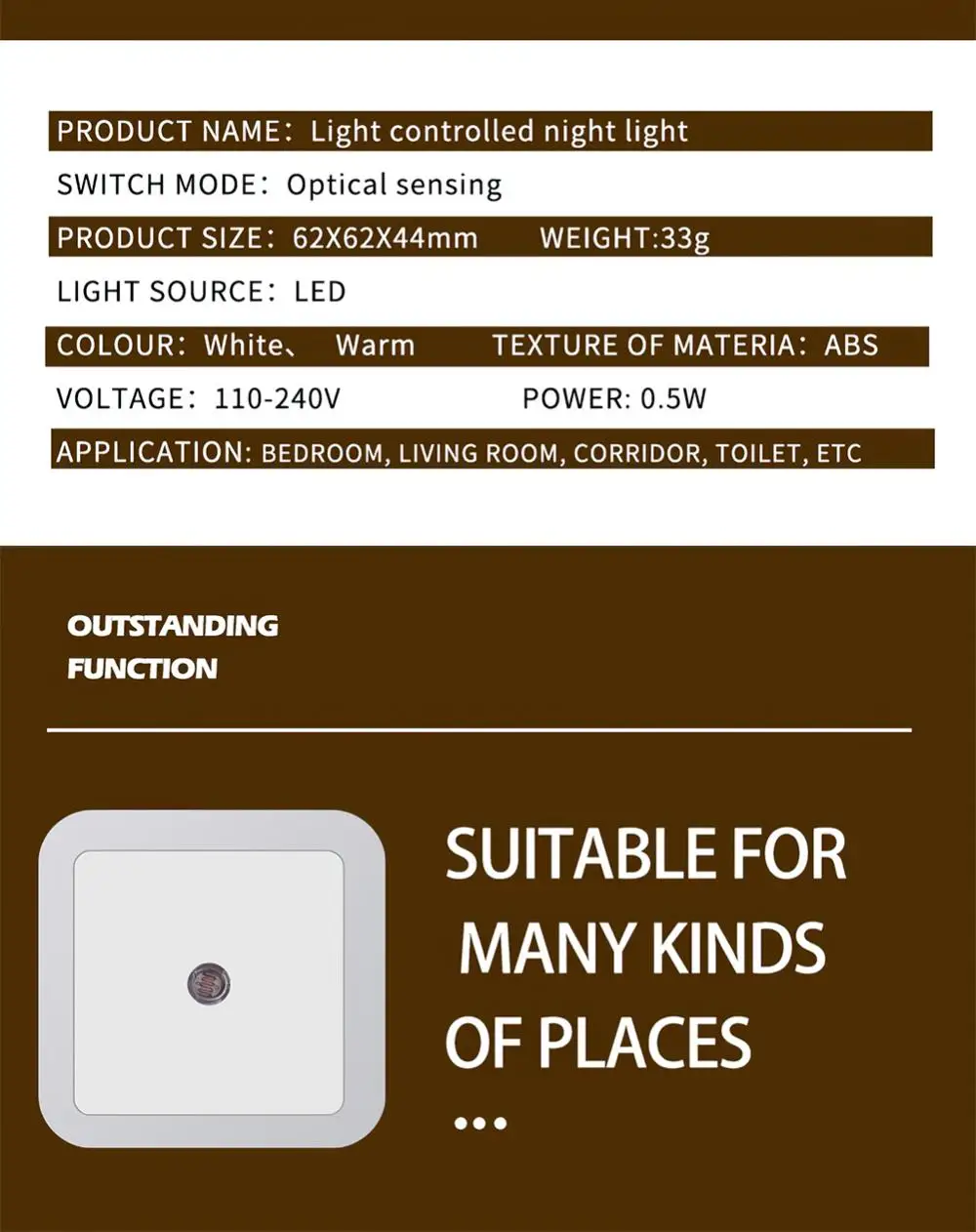 Night Light Mini Light Sensor Control 110-240V EU US UK Plug Nightlight Lamp For Children Kids Living Room Bedroom Lighting