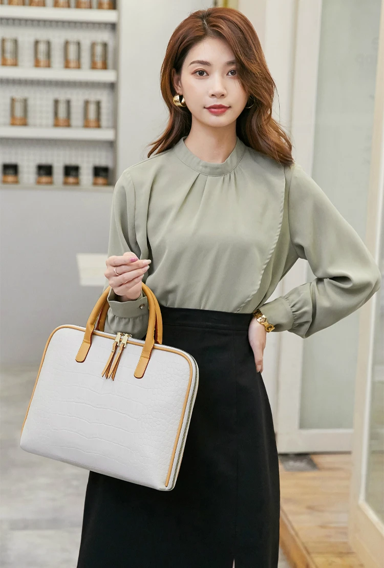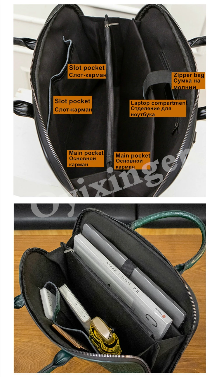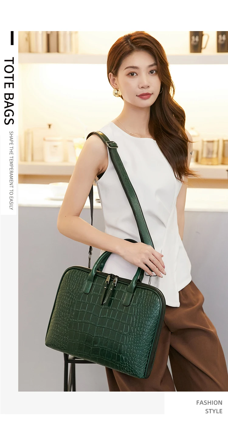 Genuine Leather Laptop Bag Women Office Laptop Briefcase For MacBook Air 14" Inch Hp Dell Female Computer Handbag