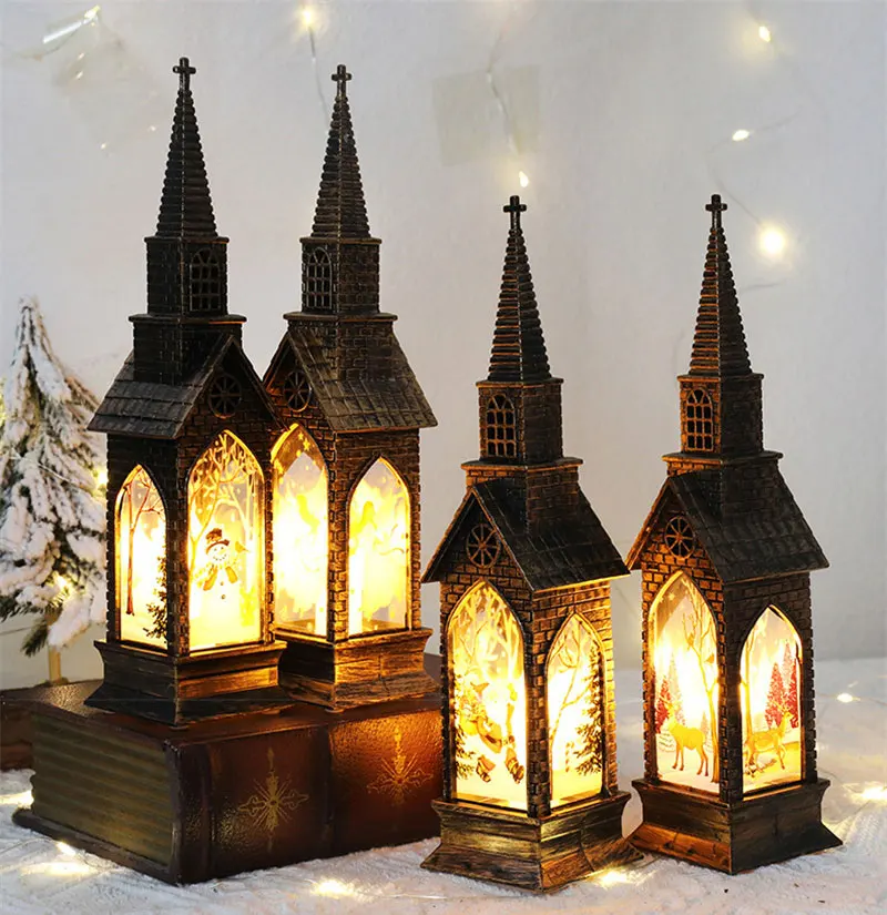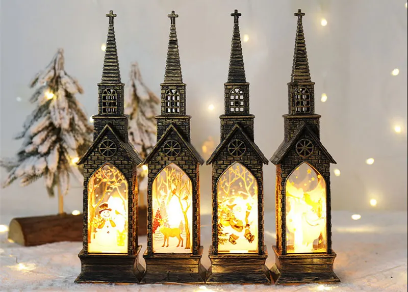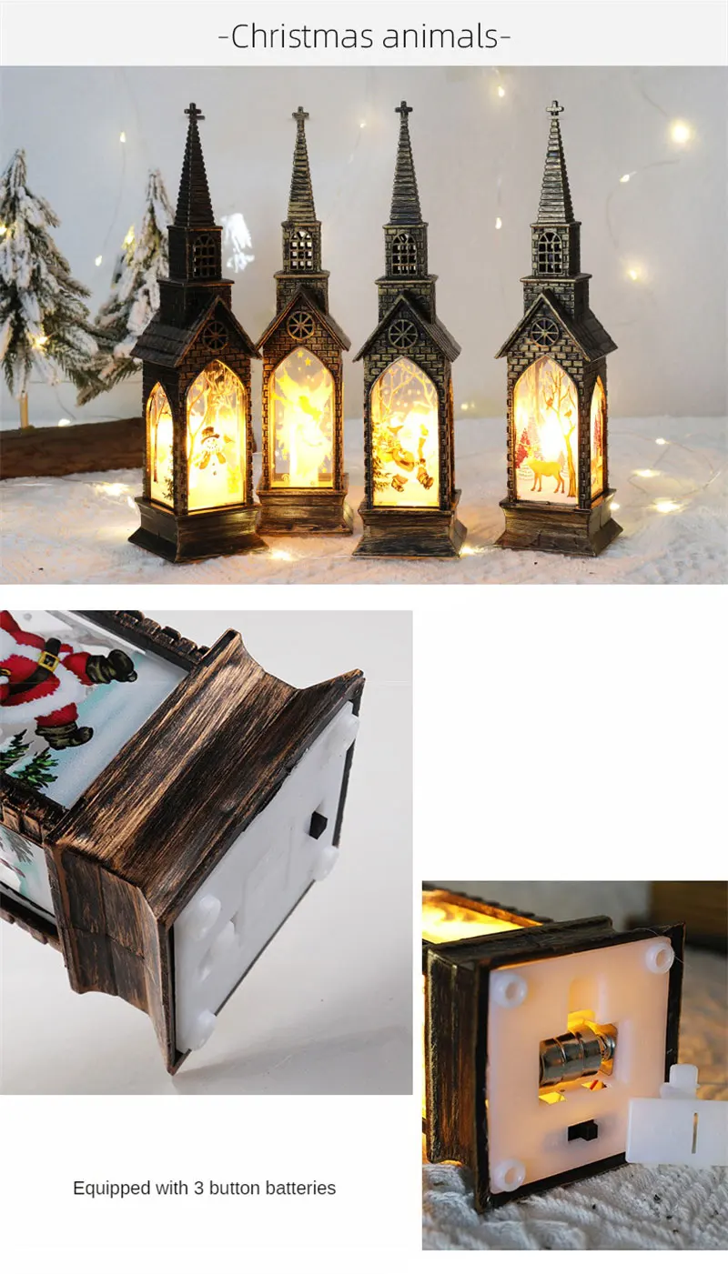 Christmas Lantern Light Santa Snowman LED Light Retro Candlestick Wind Lamp 2024 Navidad Xmas Tree Decor Xmas New Year Kid Gifts
