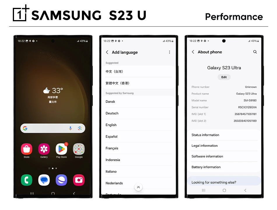 Notes1:The products will be checked for quality before shipment, you may receive the products with opened boxes. The phone is absolutely brand new and unused, because we will unbox, activate and re-seal it, so you don’t have to worry.If you mind, please be careful to buy, thank you!2:All products are guaranteed to be original and in stock.3: There are many versions of the goods, you may receive the Taiwan version of China, Hong Kong, China, Singapore and the Middle East version, they use the functionality of no difference can rest assured that you can use!4:Een if the phone has an IP68 rating, users should avoid using it in complex water environments to protect the device from potential damage. Please do not try to put it in water. If the phone is soaked in water, the warranty will be void and no refund or exchange will be made.Samsung Galaxy S23 Ultra - Main FeaturesModel: Samsung Galaxy S23 Ultra 5GDisplay: 6.8'', 1440x3088 500 ppi density, 120Hz AMOLED X2 DisplayOS: Android 13, One UI 5.1CPU: Qualcomm SM8550-AC Snapdragon 8 Gen 2 (4 nm) , 5GStorage: 8GB RAM+256GB ROM / 12GB RAM+256GB ROM / 12GB RAM+512GB ROMBattery: 5000mAh, Fast charging 45WRear Camera: Quad 200MP+10MP+10MP+12MPFront Camera: 12MPFeatures : Taiwan