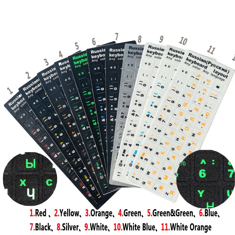 Designed for 12 kinds colors.Unique coating protects from abrasion, long-term durability.Use adhesive with firmly, easy to apply and remove and no residue.Before make an order, please notice and check thecolorwhat you choose.Specification:Condition: Brand NewProduct Name: Russian Keyboard StickerMaterials: PVC plasticDimensions: 18cm * 6.5cm * 0.05cm (Length * width * thickness)Each piece specifications for 1.3CM (High) * 1.1CM (Wide)Language:English/RussianSticker Color: As DescripLetter Color: As DescripApplicable Keyboard:Common to all 10-inch or more laptops, desktops keyboard.1.We accept Alipay, West Union, TT. All major credit cards are accepted through secure payment processor ESCROW.2.Payment must be made within 3 days of order.3.If you can\'t checkout immediately after auction close, please wait for a few minutes and retry Payments must be completed within 3 days.1.WORLDWIDE SHIPPING. (Except some countries and APO/FPO)2. Orders processed timely after the payment verification.3. We only ship to confirmed order addresses.Your order address MUST MATCH your Shipping address.4. The images shown are not the actual item and are for your reference only.5. SERVICE TRANSIT TIME is provided by the carrier and excludes weekends and holidays. Transit times may vary, particularly during the holiday season.6. If you have not received your shipment within 30 days from payment, please contact us. We will track the shipment and get back to you as soon as possible with a reply. Our goal is customer satisfaction!7. Due to stock status and time differences, we will choose to ship your item from our first available warehouse for fast delivery.1. You have 7 days to contact us and 30 days to return it from the date it was received. If this item is in your possession more than 7 days, it is considered used and WE WILL NOT ISSUE YOU A REFUND OR REPLACEMENT. There are NO EXCEPTIONS! Shipping cost is bear by both seller and buyer in half.2. All returned items MUST BE in the original packaging and you MUST PROVIDE us with the shipping tracking number, specific reason for the return, and your po#.3. We will refund YOUR FULL WINNING BID AMOUNT, upon receipt of the item in its original condition and packaging with all components and accessories included, AFTER BOTH Buyer and Seller cancel the transaction from aliexpress. OR, you may choose to have a replacement.4. We will bear all the shipping cost if the product(s) is (are) not as advertised.