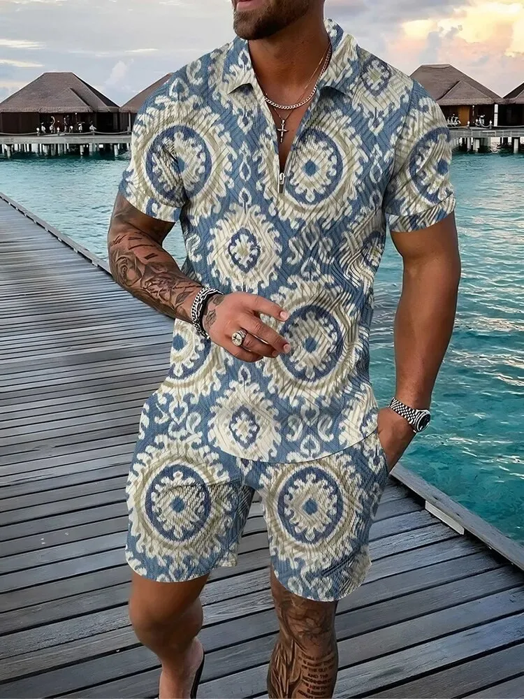 Summer Trend 3D Print Men's Tracksuit Set Casual Zipper Polo Shirt and Shorts 2p