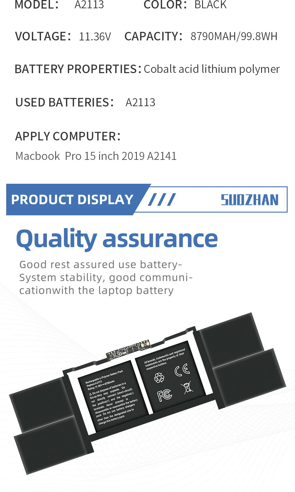 SUOZHAN 99.8WH A2113 Laptop Battery For Apple MacBook Pro Retina 16'' A2141 2019