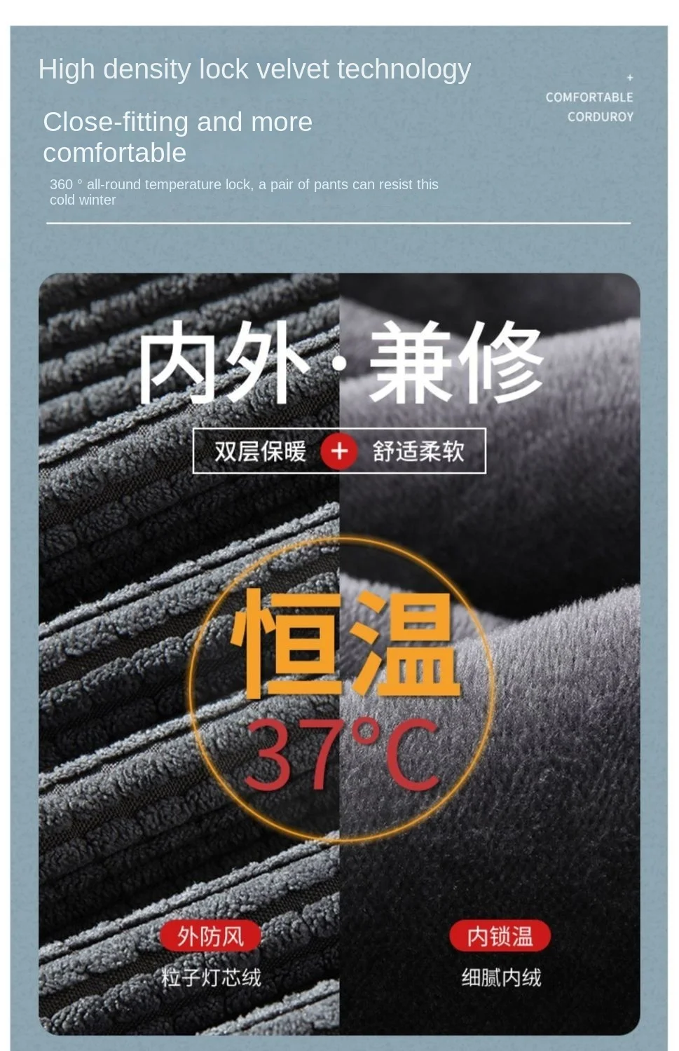 Thermal Pants Man Winter Corduroy Fleece Warm Brushed Thickened Pants Men Korean