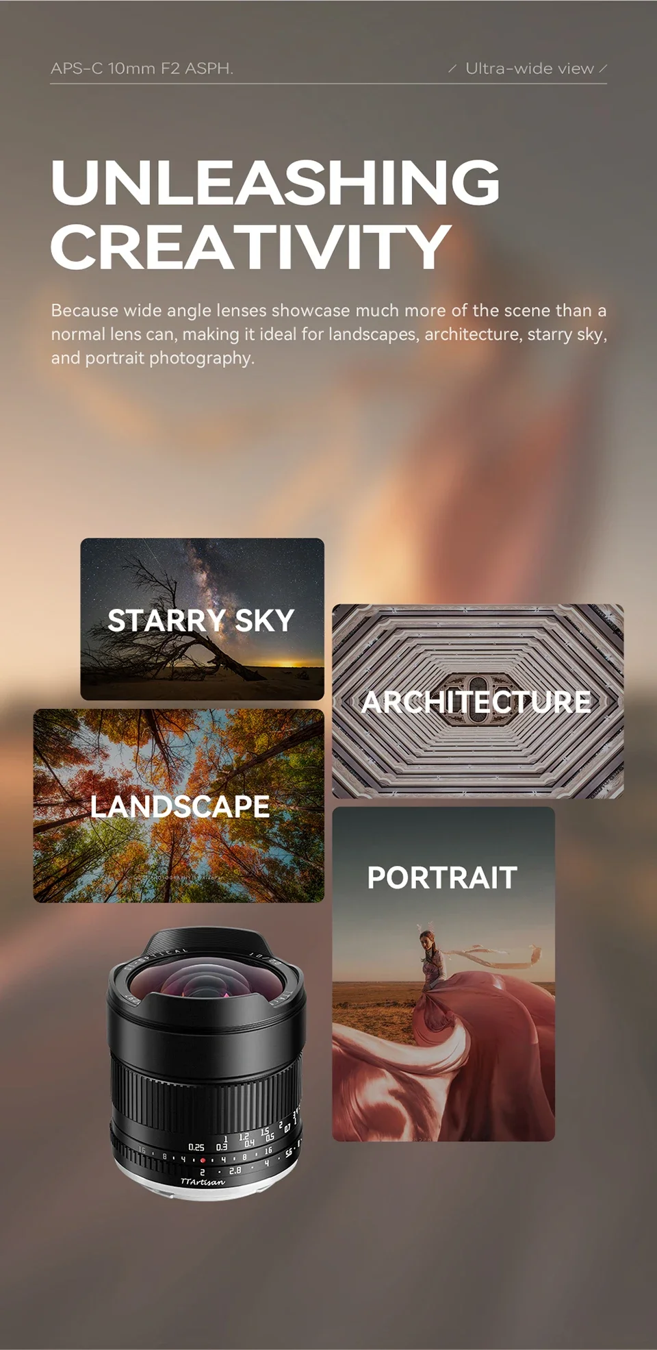 TTArtisan 10mm F2 APS-C ASPH 105° Ultra-wide Angle Lens for Camera Photography