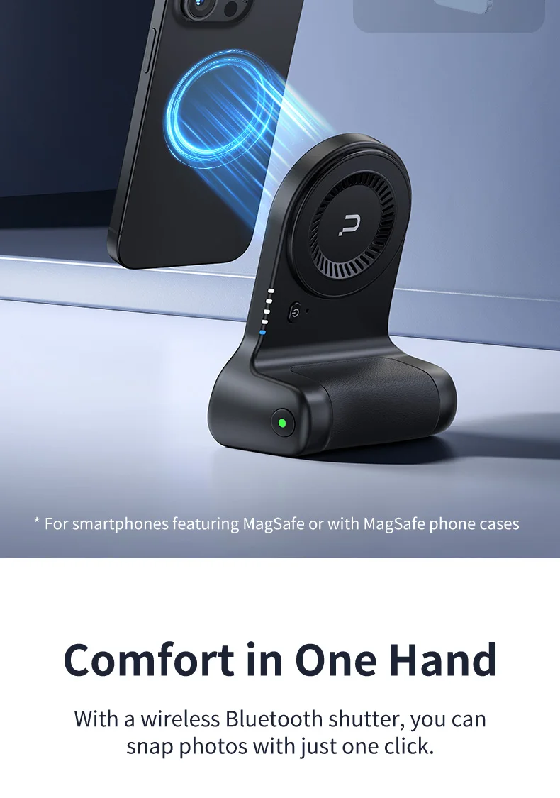 Comfort in One Hand: easily hold by one hand. With a wireless Bluetooth shutter, you can snap photos with just one click