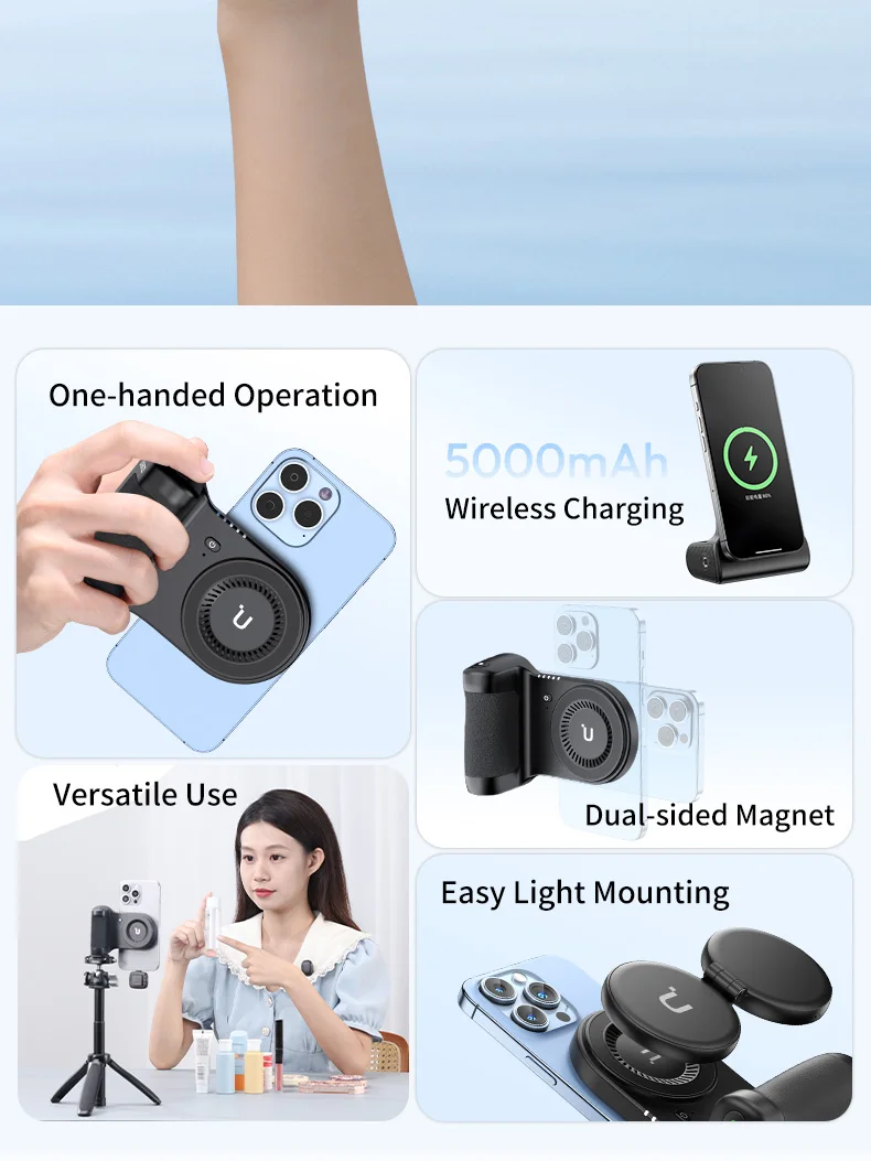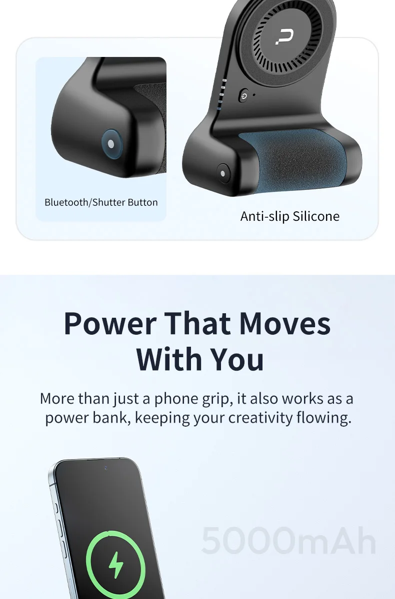 Built-in 5000mAh Battery: More than just a phone grip, it also works as a power bank, keeping your creativity flowing