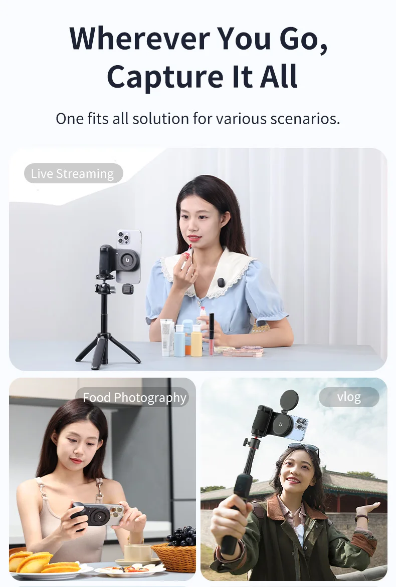 Wherever You Go, Capture It All: One fits all solution for various scenarios, Selfie Food Photography Vlog Live Streaming Online