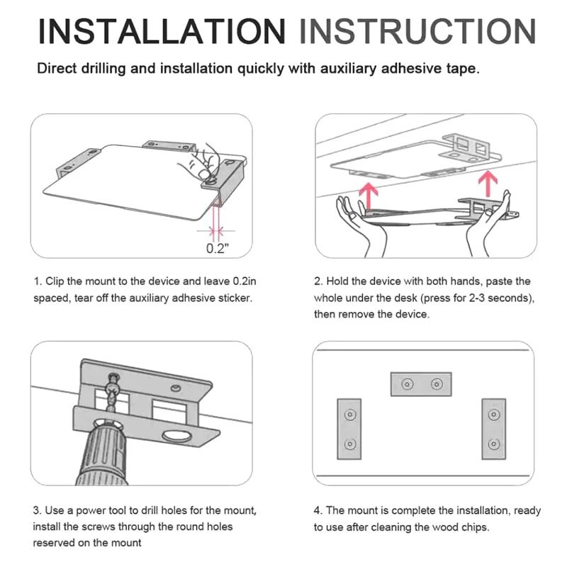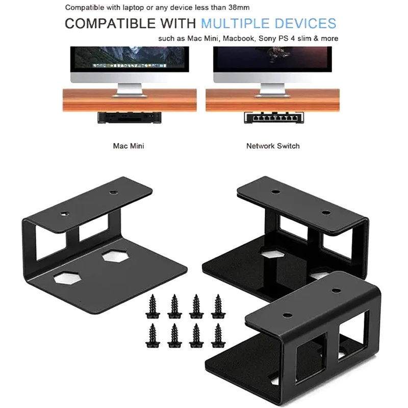 The upgraded under-counter laptop stand is made of all-metal, stronger and more durable than the plastic version Easy to Install: Place the device and the stand on the intended installation position, compare the positions and mark them well. Screw the screws included in the package through the holes in the bracket to the desired position.
