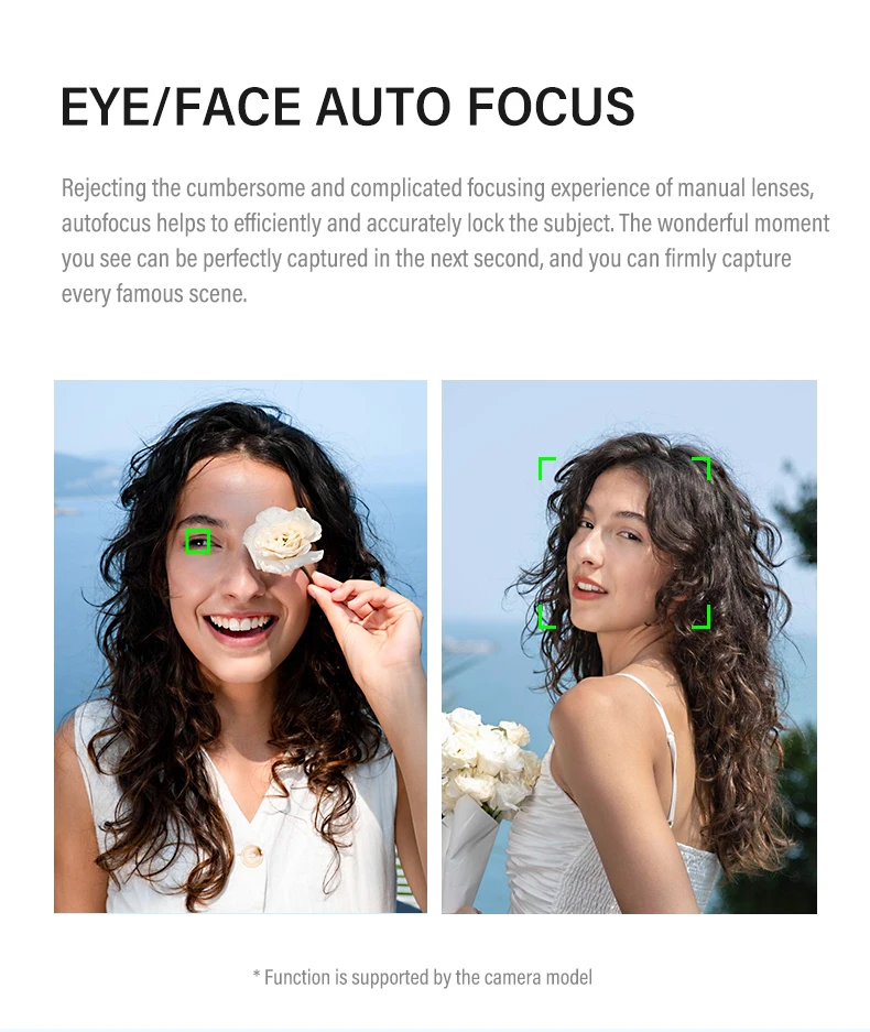 Rejecting the cumbersome and complicated focusing experience of manual lenses, autofocus helps to efficiently and accurately lock the subject. The wonderful moment you see can be perfectly captured in the next second, and you can firmly capture every famous scene.